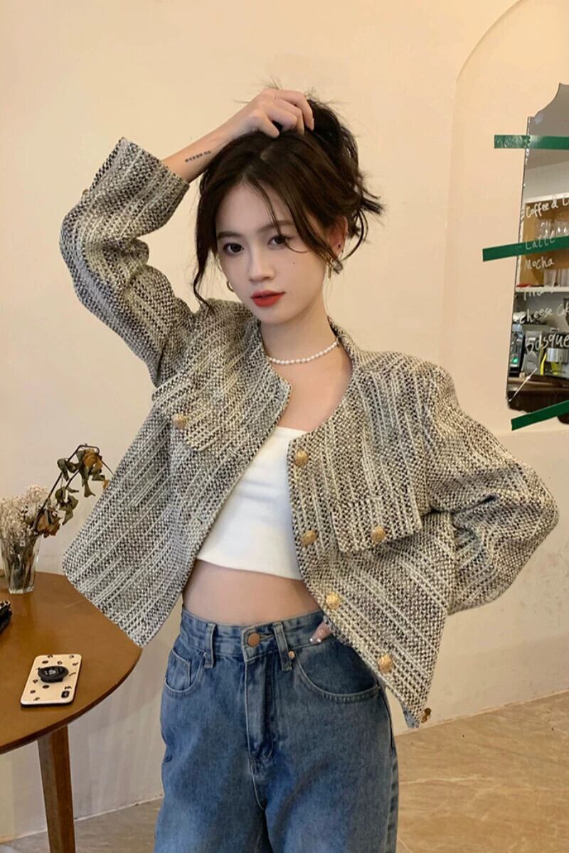 Xiaoxiangfeng 高級カラーヒットショートコート女性の 2023 年春の新作緩くて薄い気質カーディガントップ潮 スプリング 春物 0921920084849736