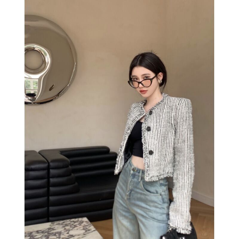 フレンチスタイルニッチスモールフレグランスジャケットレディース2023春秋新作高級気質カラーコントラストストライプカーディガントップ スプリング 春物 オータム 秋物 0921918240036474