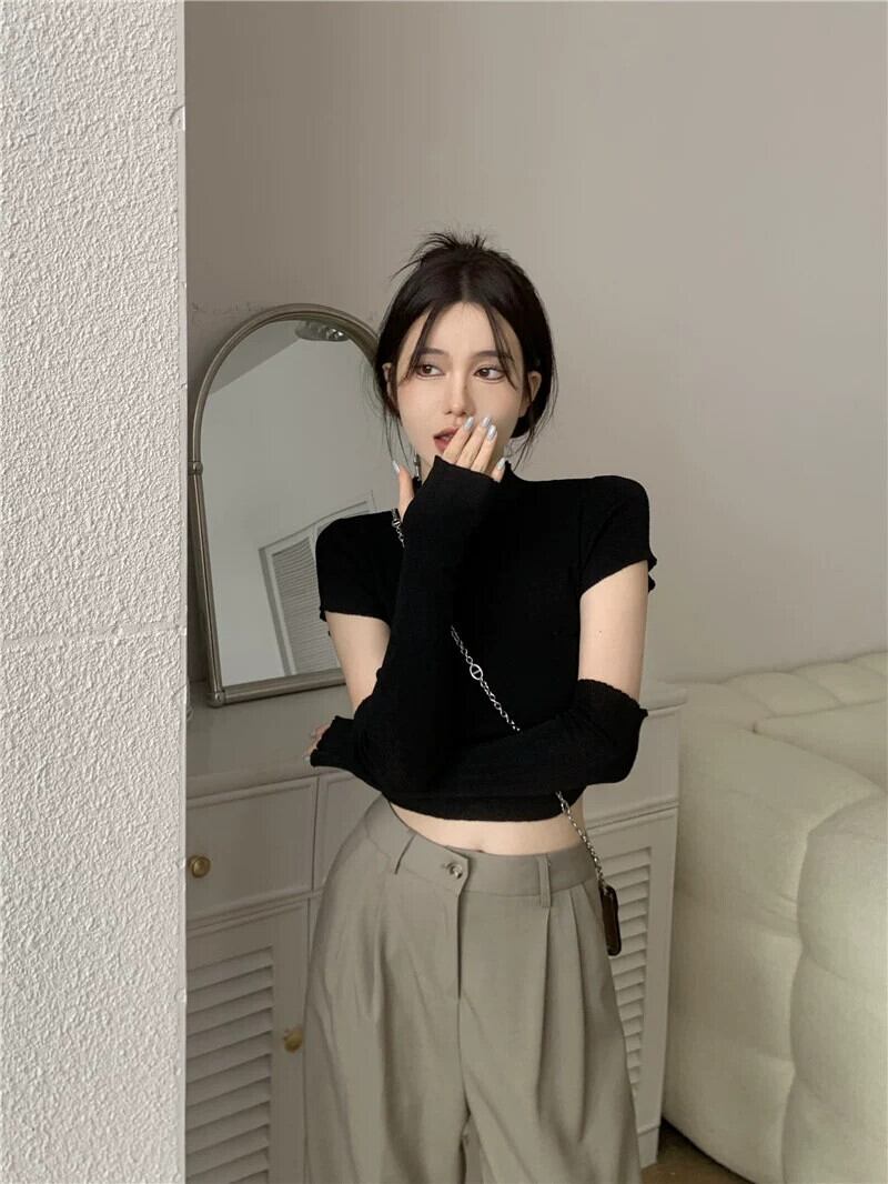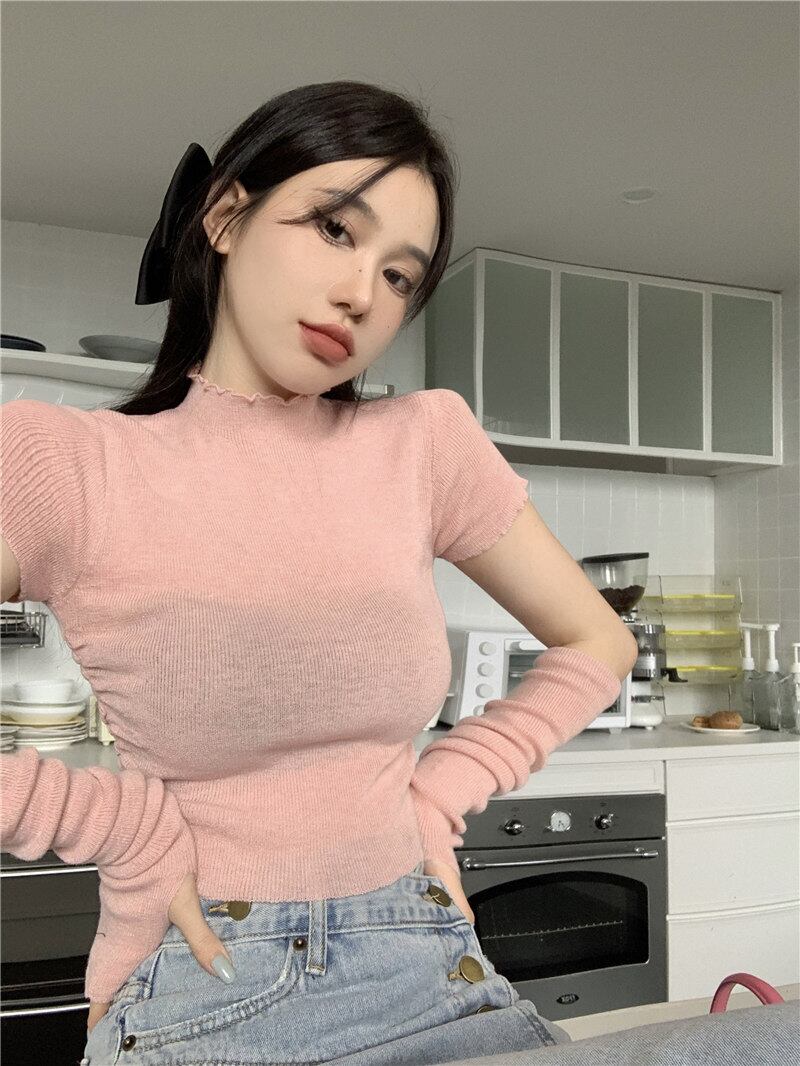 センス少人数袖付き長袖ニットセーターレディース2023春新作スリムスリムハーフハイカラートップタイド ロング スプリング 春物 0921919033477613