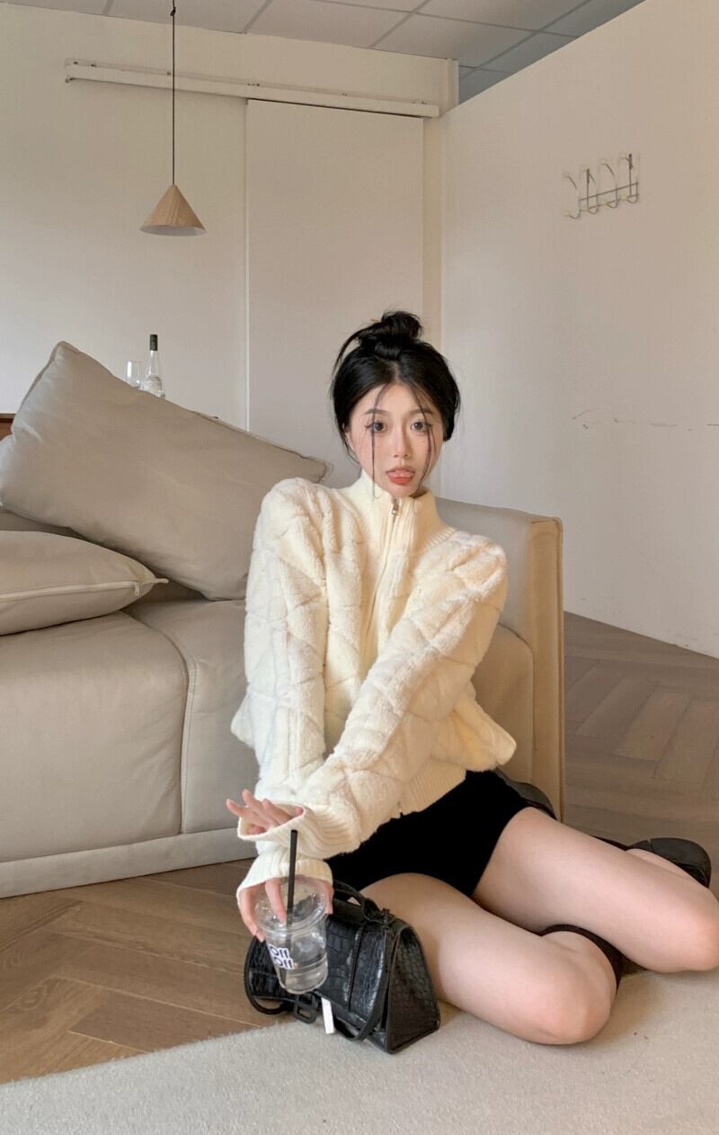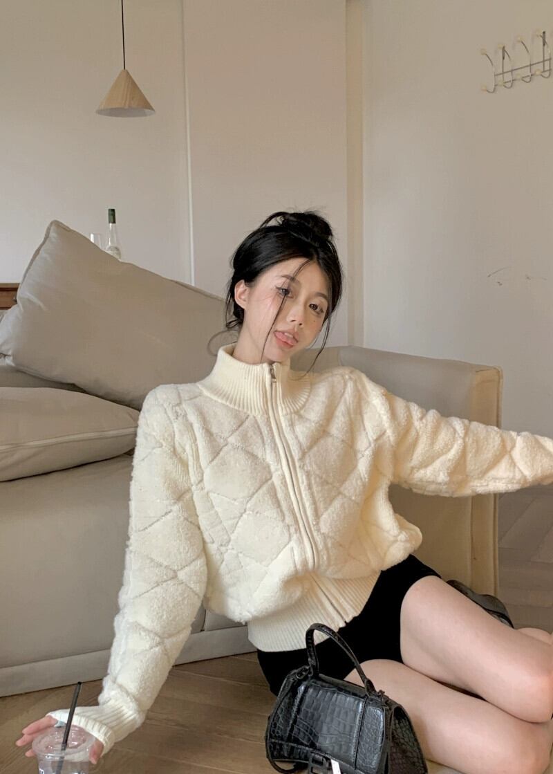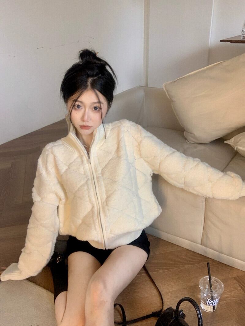 ソフトワックス状白厚いルーズセータージャケット女性春と秋 2023 新しいオールマッチ優しい風ショートカーディガントップ ホワイト スプリング 春物 オータム 秋物 0921944729622857