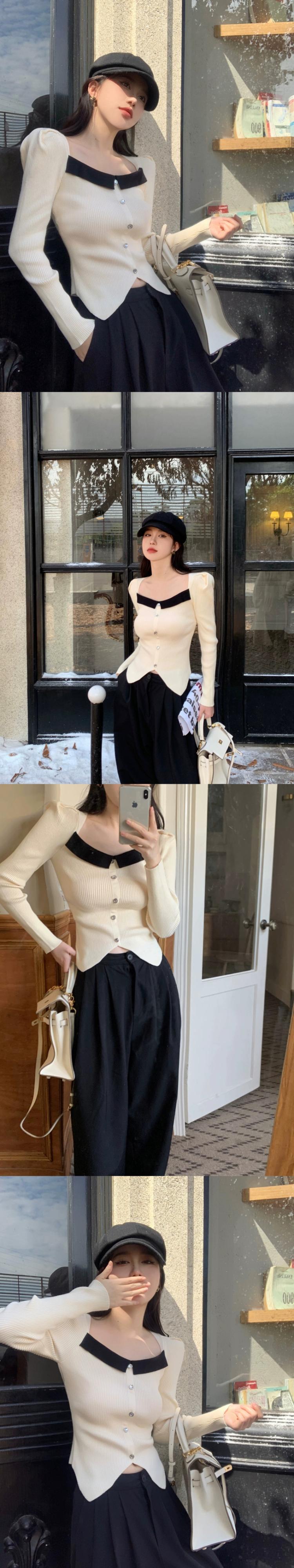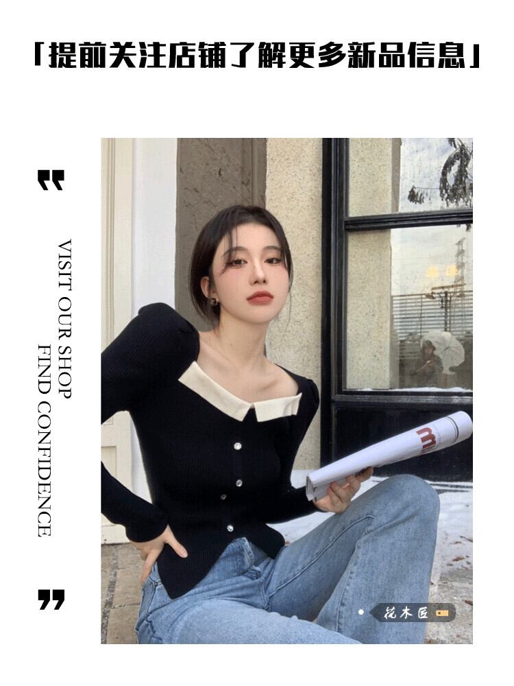 フランスの気質デザインセンス長袖ニットセーターレディース 2023 春新作スリムスリムスクエアカラースリットセーター ロング スプリング 春物 スクウェア 0921939962439675