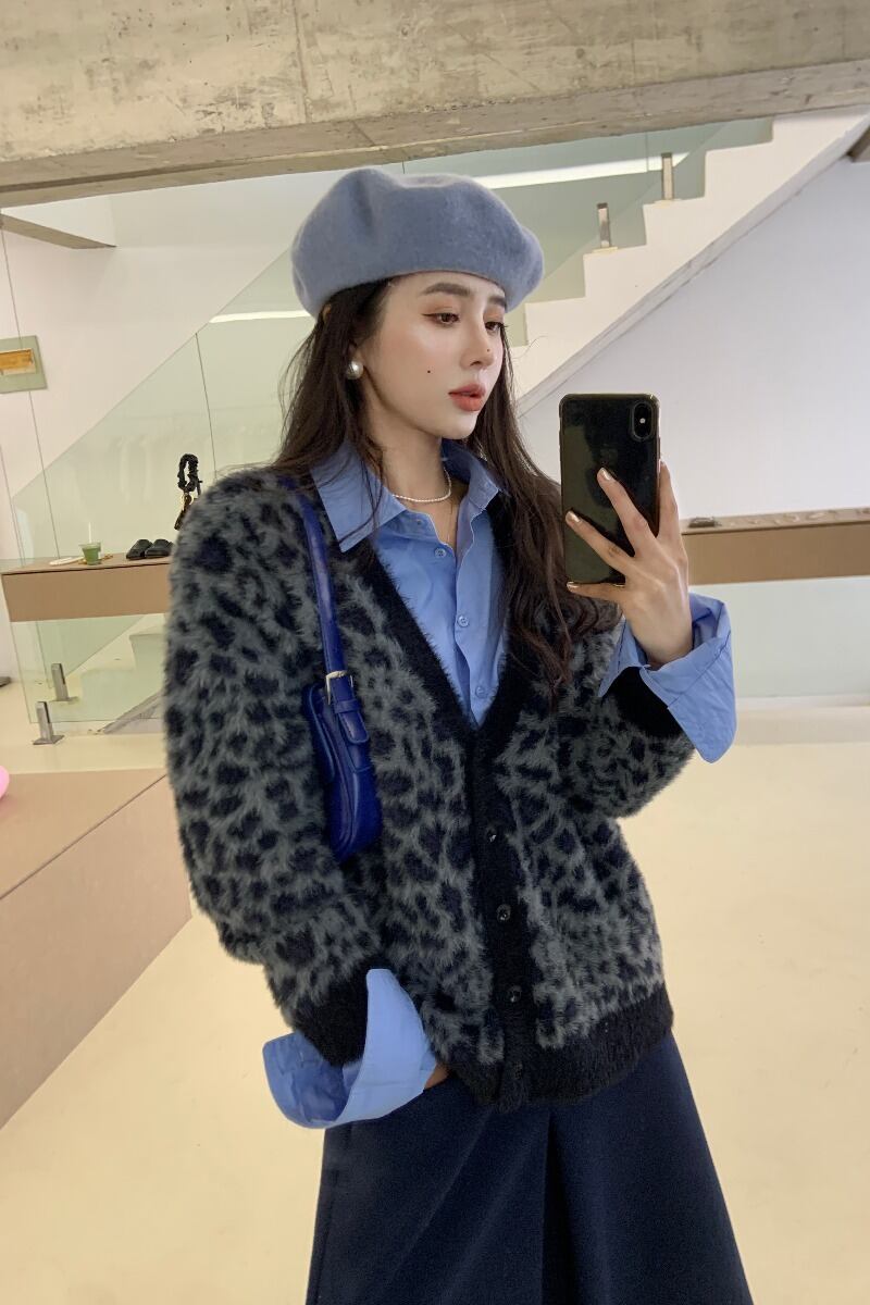 優しくておしゃれなヒョウ柄セータージャケットレディース2023春新作ゆったり薄手長袖Vネックニットカーディガン ロング スプリング 春物 0921982814908701