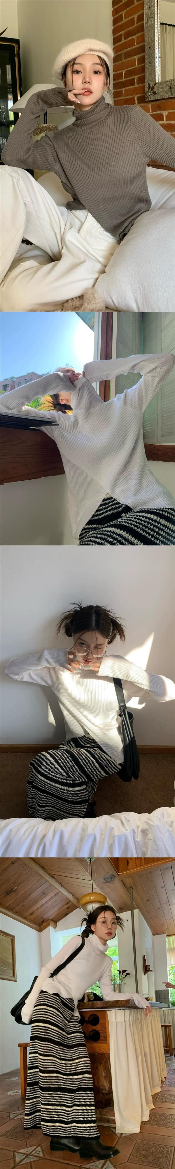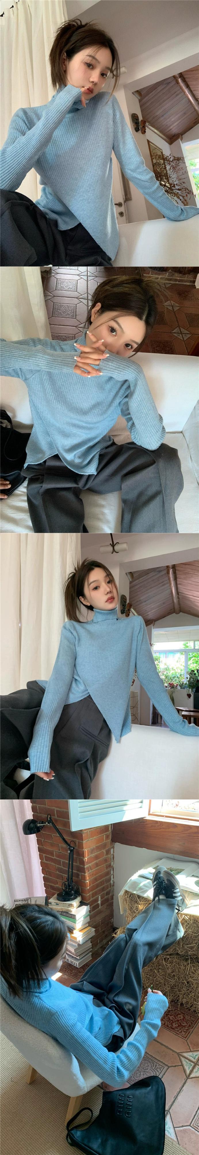 多彩なデザインセンス裾スリットタートルネックセーターレディース2023春新作スリムスリムプルオーバーセーター潮 スプリング 春物 0921919138207174