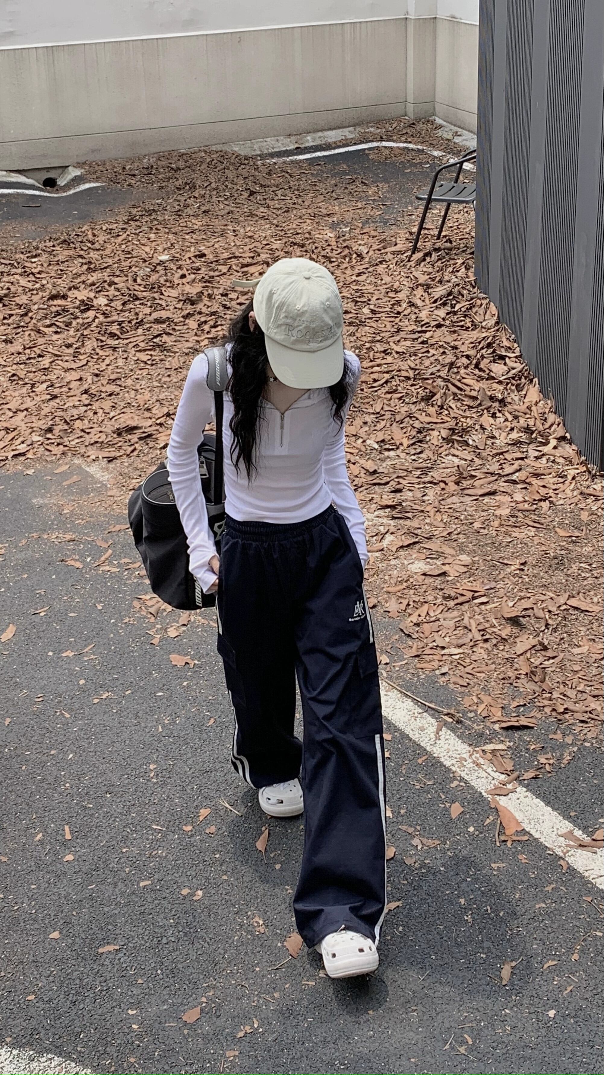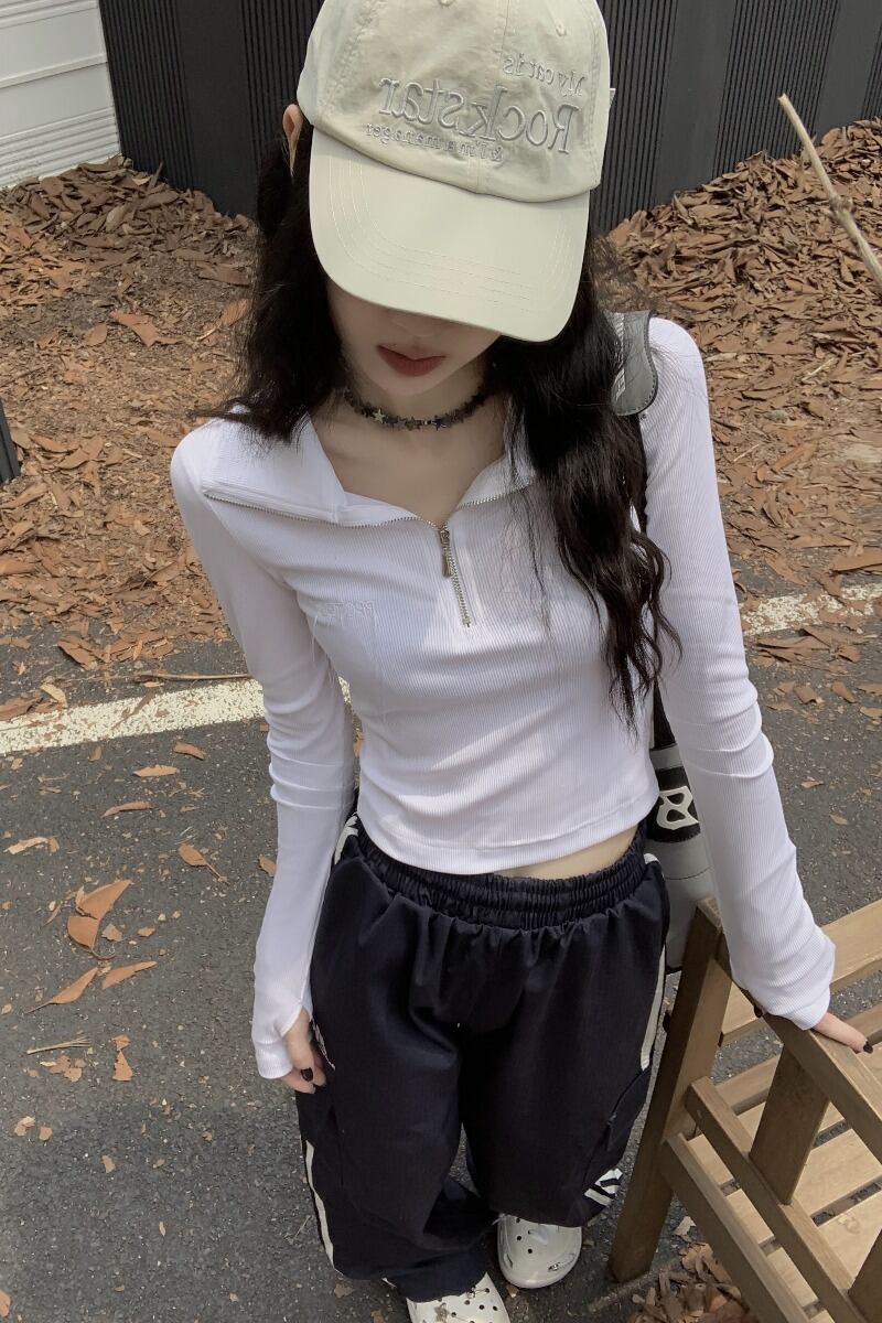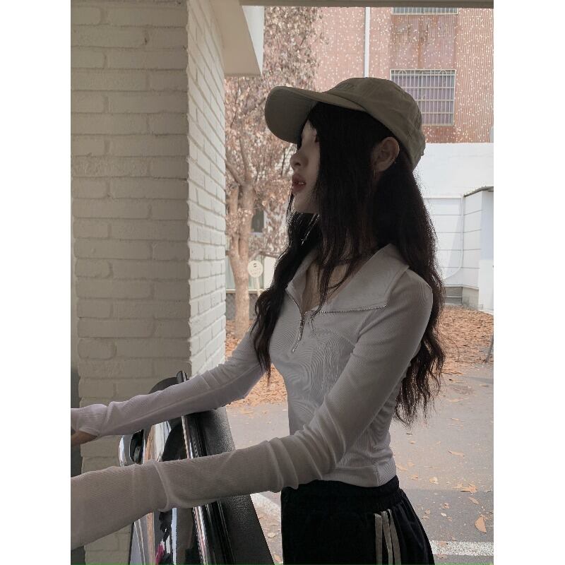 センス気質ジッパーポロカラー長袖 Tシャツ女性の 2023 年春の新バージョンスリムトップイン ロング スプリング 春物 0921970406220413