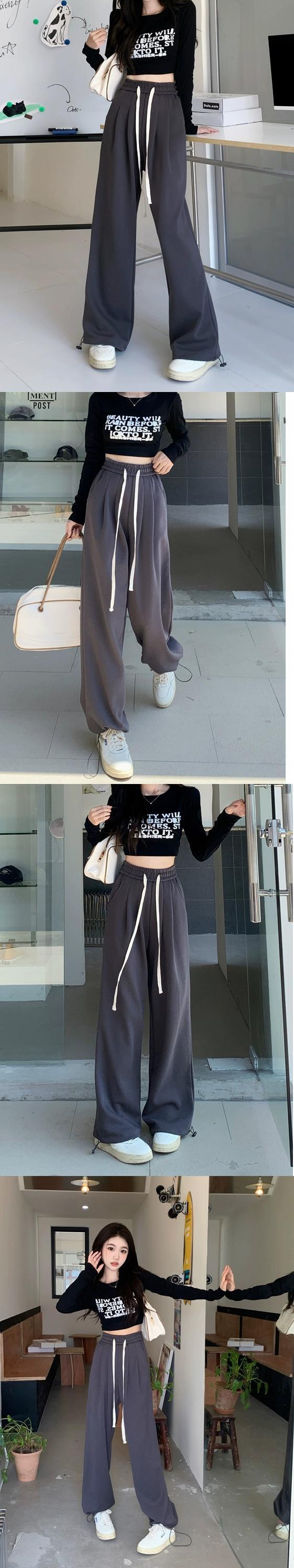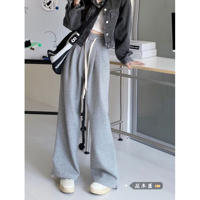 バージョンのオールマッチソリッドカラースポーツカジュアルパンツレディース2023夏新作ハイウエストスリムストレートワイドレッグロングパンツ潮 ハイウェスト サマー 夏物 ワイドパンツ 0921937266996152