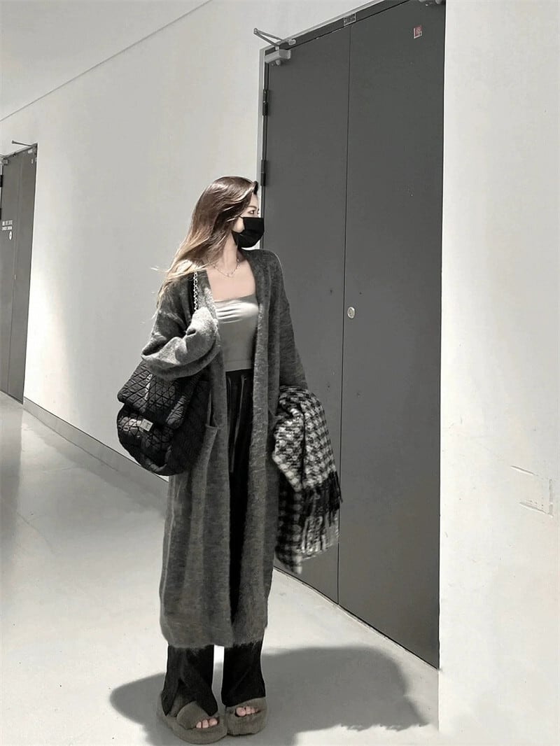 スタイル怠惰な風ソフトワックスセーターコート女性春と秋のアウターウェアルーズ膝丈カーディガン優しい豪華なトップ スプリング 春物 オータム 秋物 0921924798113036