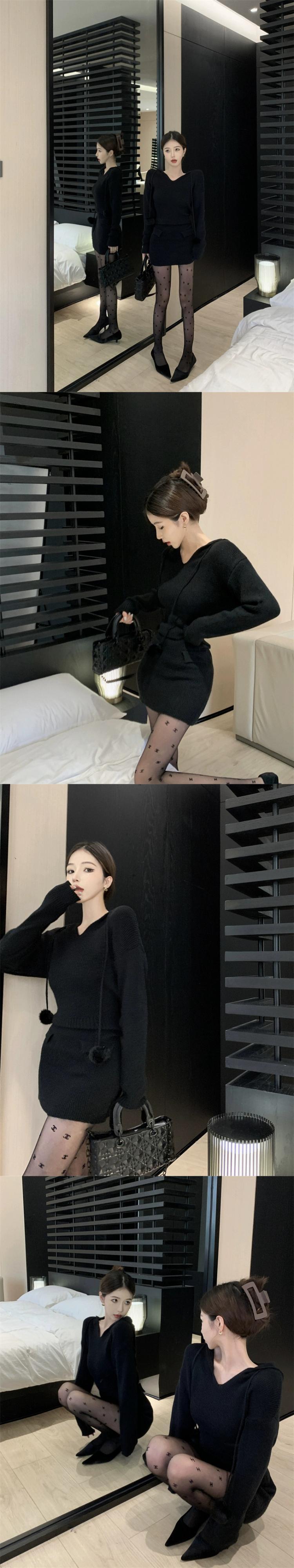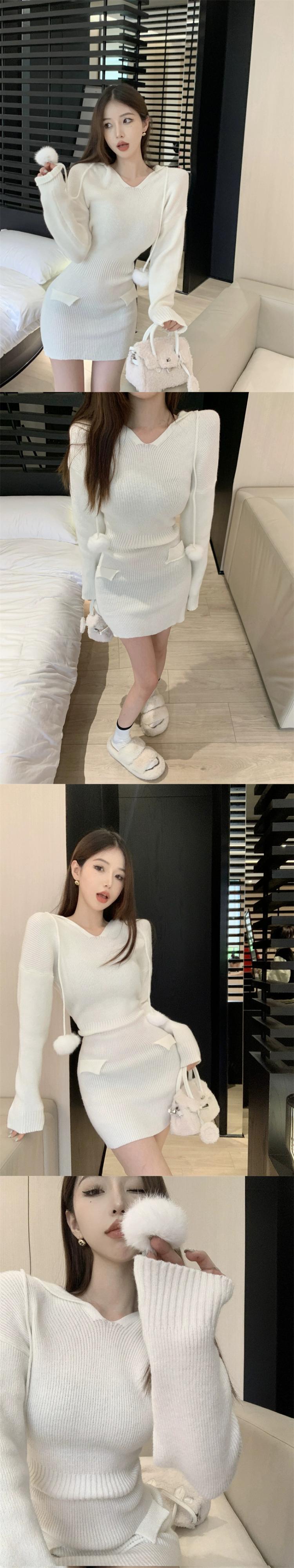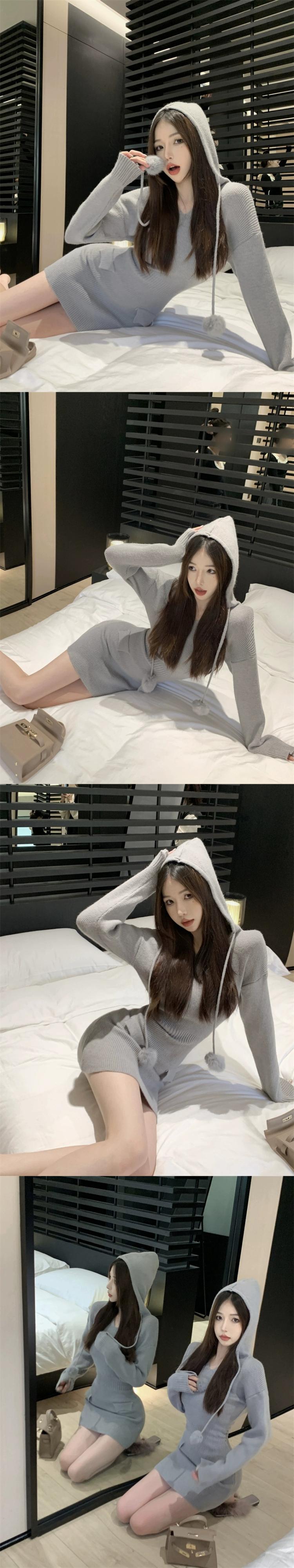 純粋な欲望フード付きニット長袖ドレス女性の春と秋 2023 新しいウエスト痩身セーターバッグヒップスカート ロング スプリング 春物 オータム 秋物 0921972960502613