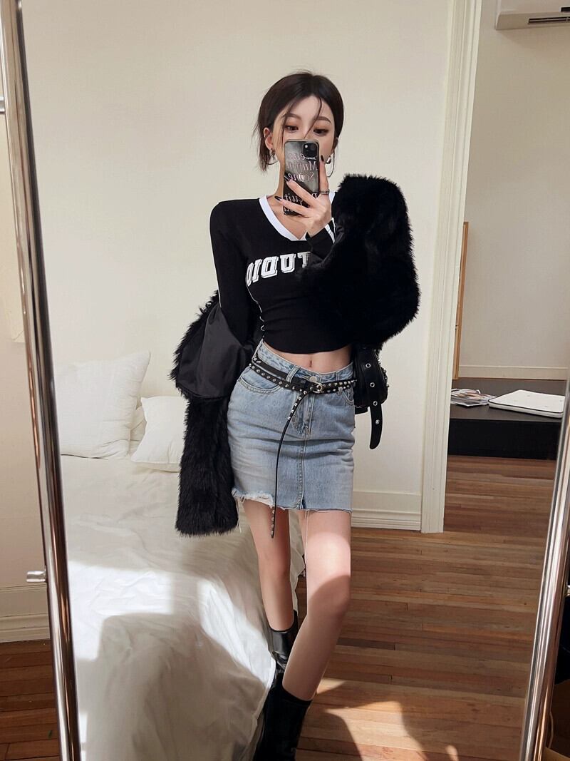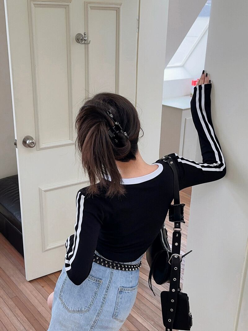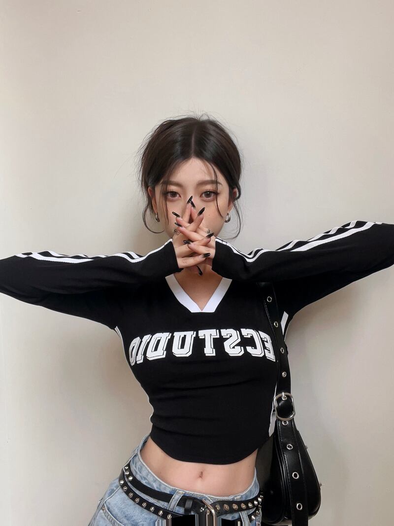 アメリカンレトロスリムスリム長袖 tシャツ女性の 2023 年春の新しいオールマッチショートボトムシャツトップ ロング スプリング 春物 0921950617451109