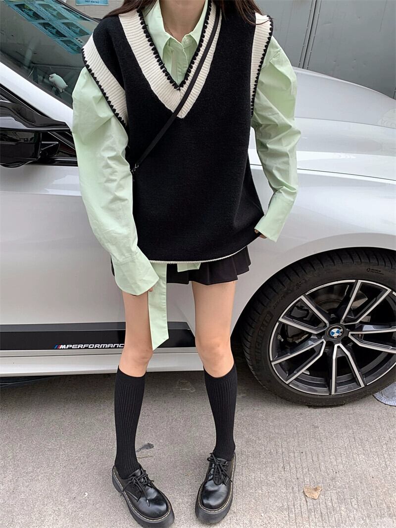 シンプルなデザインのカラーコントラストのバージョンのVネックニットベストレディース2023春新作オールマッチルーズレイヤードベスト レッド スプリング 春物 0921912856440289