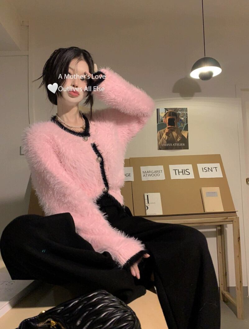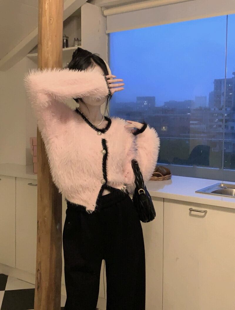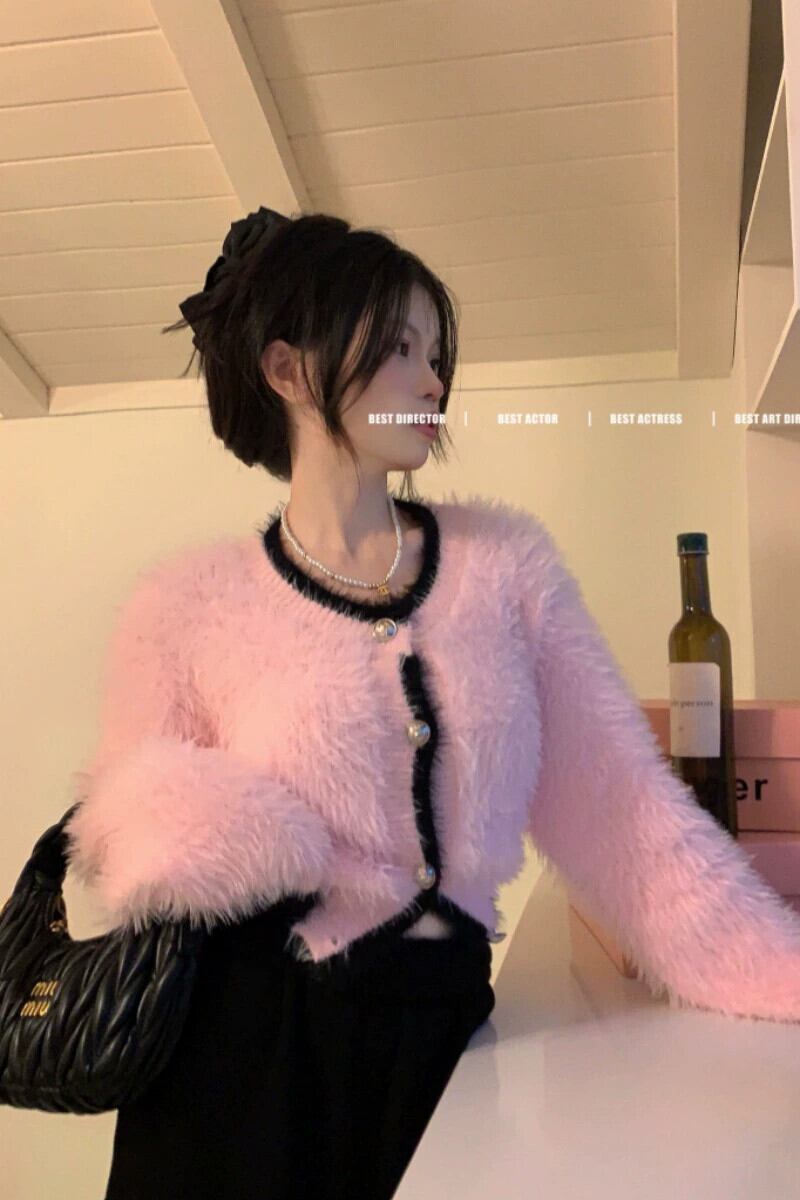 気質小さな香り模造ミンクファーショートセーターコート女性の春と秋の2023新しい緩い薄いニットカーディガン潮 スプリング 春物 オータム 秋物 092191642518685