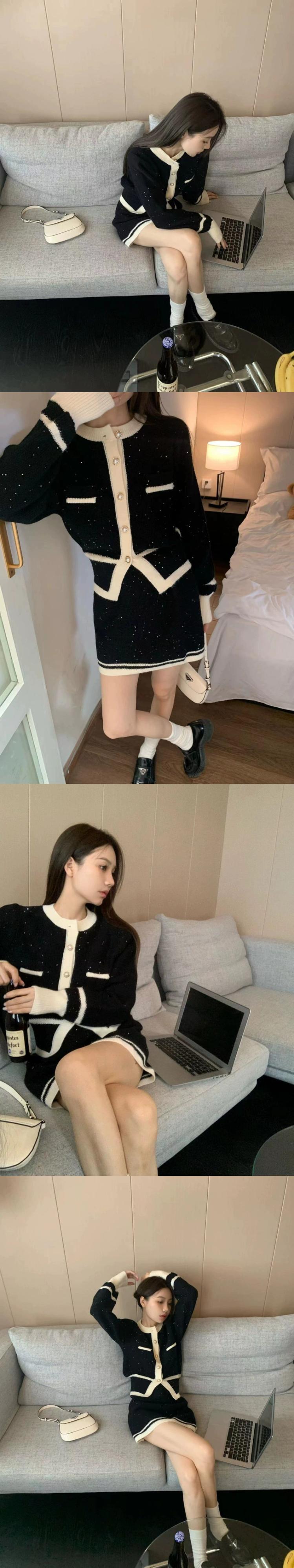 レトロな小さな香りニットスーツの女性の春と秋の 2023 新作ショートカーディガントップ痩身スカート 2 点セット スプリング 春物 オータム 秋物 0921923728774133