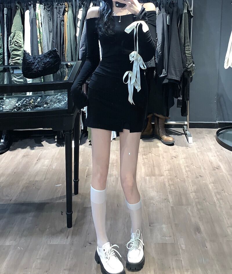 センスワード襟セクシーな長袖ドレス女性の春と秋 2023 新しいオールマッチ自己修養薄いラップヒップスカート ロング スプリング 春物 オータム 秋物 0921955970503254