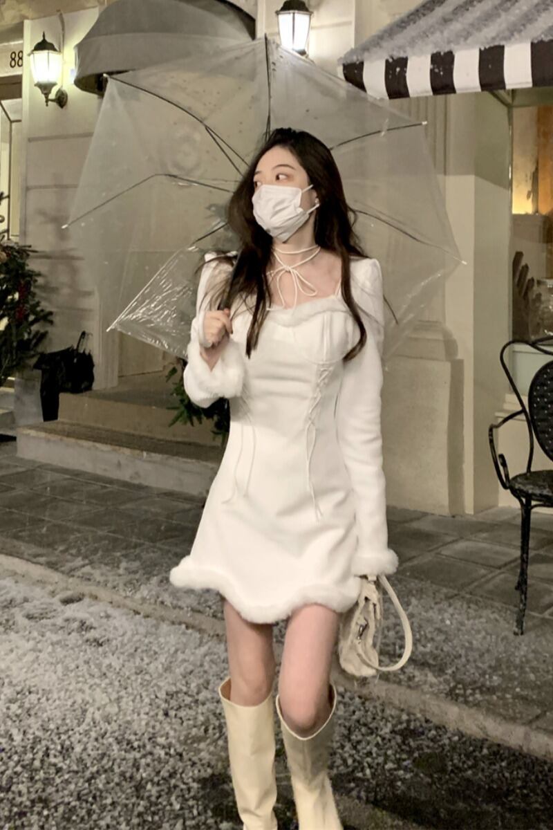 雰囲気純粋な欲望スタイル長袖ドレスの女性の 2023 春の新作 V ネックネクタイウエストウエストスリムラップヒップスカート ロング スプリング 春物 Vネック ピュア 0921959604702808