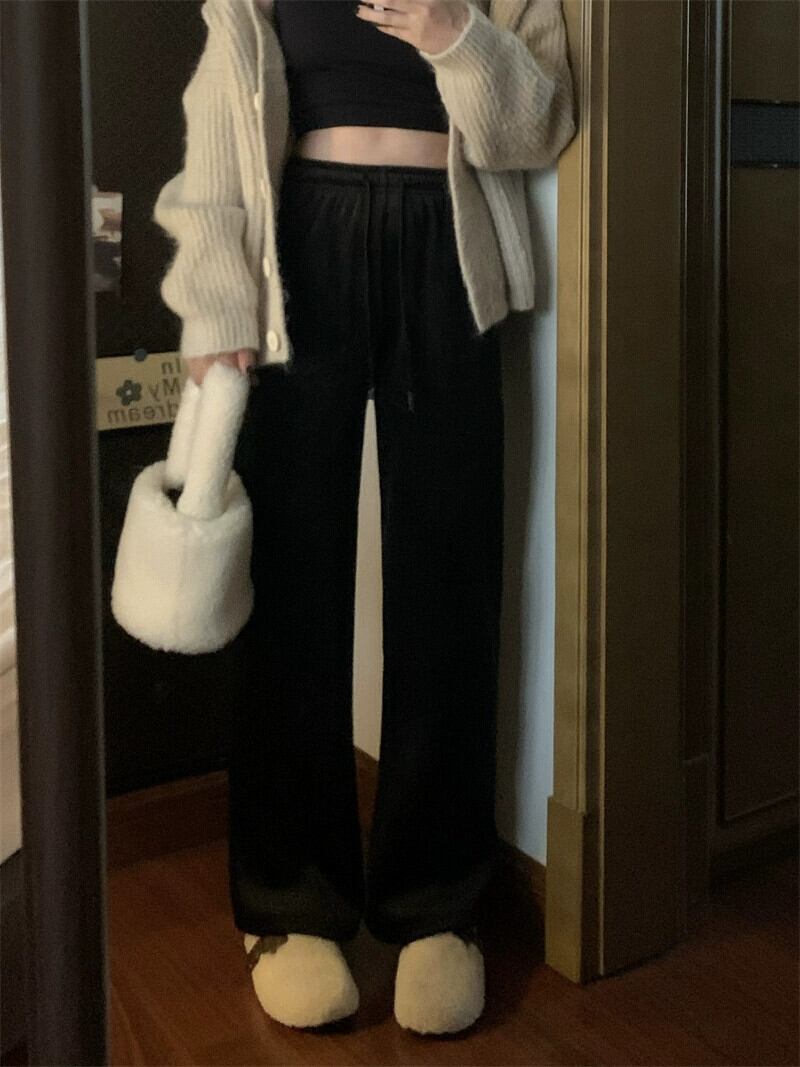 ベルベット弾性ウエストルーズプラスベルベット厚いカジュアルパンツ女性の冬の 2023 新しい巾着ドレープワイドレッグパンツ エラスティック 伸縮 ウィンター 冬物 092199018726812