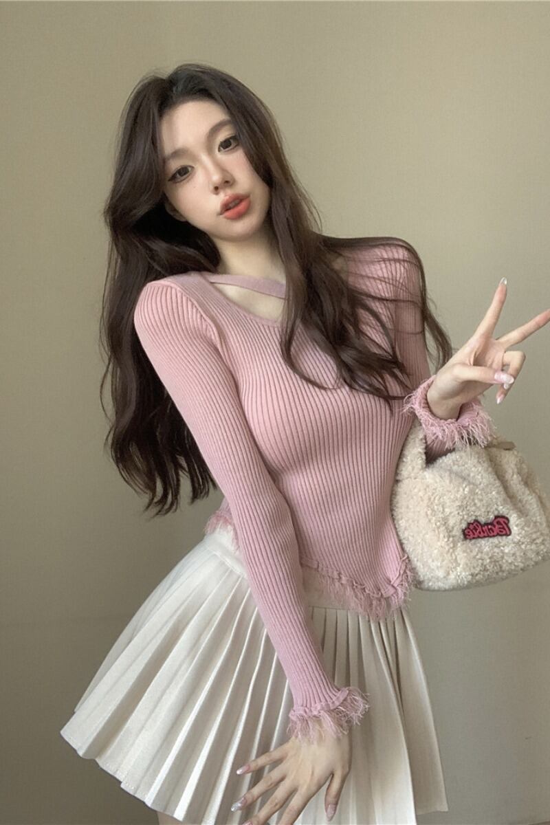 センス不規則なフリンジ付き長袖ニットセーター女性の春と秋 2023 新しい慎重な機械西洋スタイルオールマッチボトリングシャツ ロング スプリング 春物 オータム 秋物 0921965016168908
