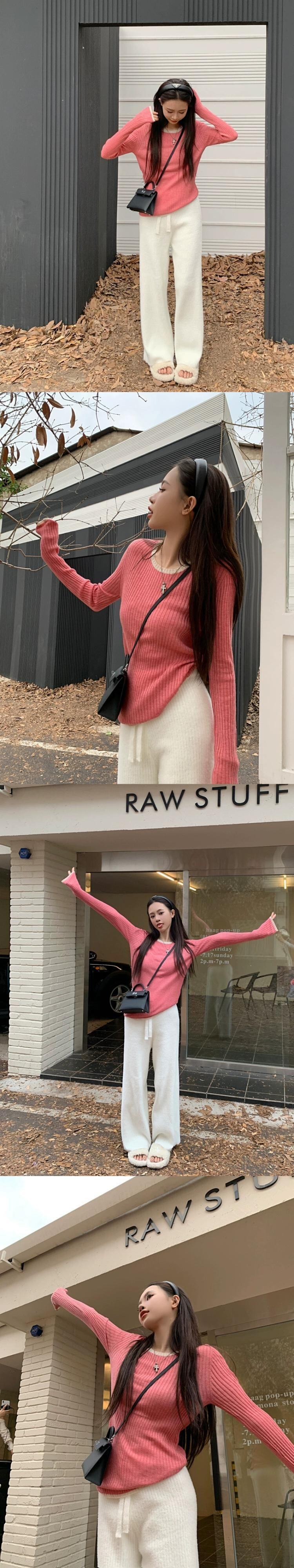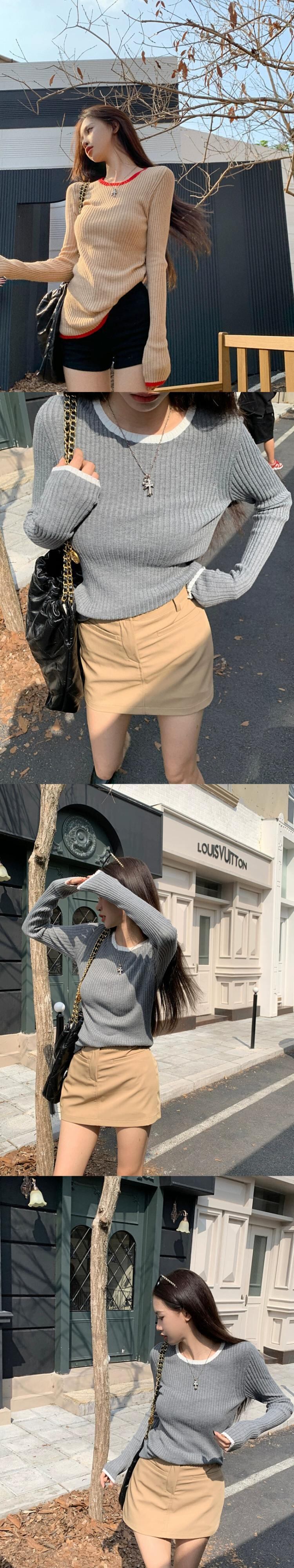 ニッチデザインセンスコントラストカラーニットセーターレディース春インナー長袖ボトシャツファッションフライドストリート痩身薄手トップ ロング スプリング 春物 0921927784704947