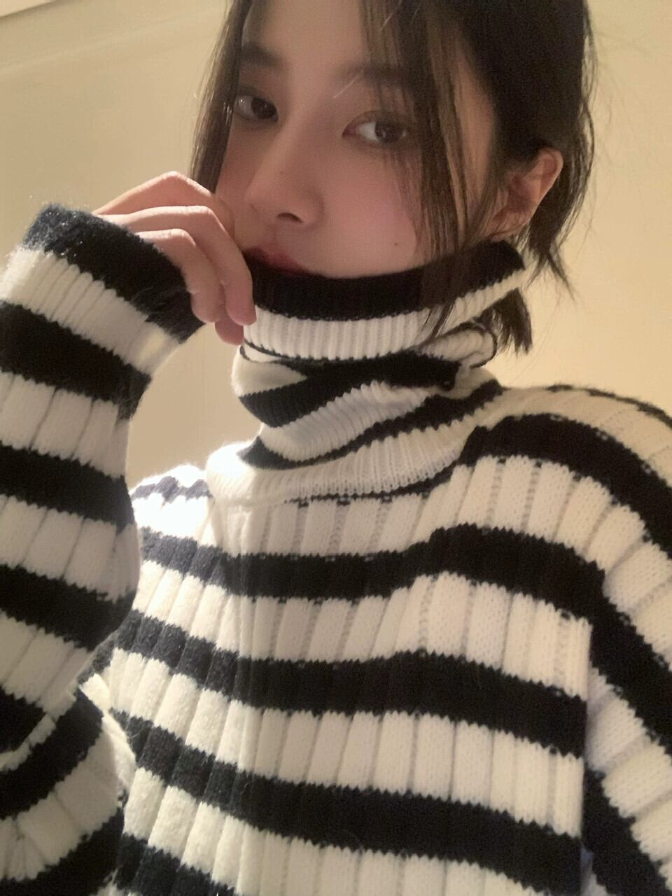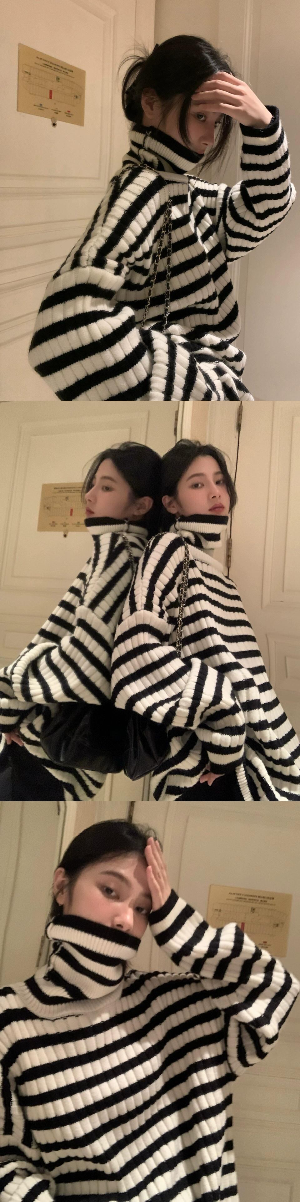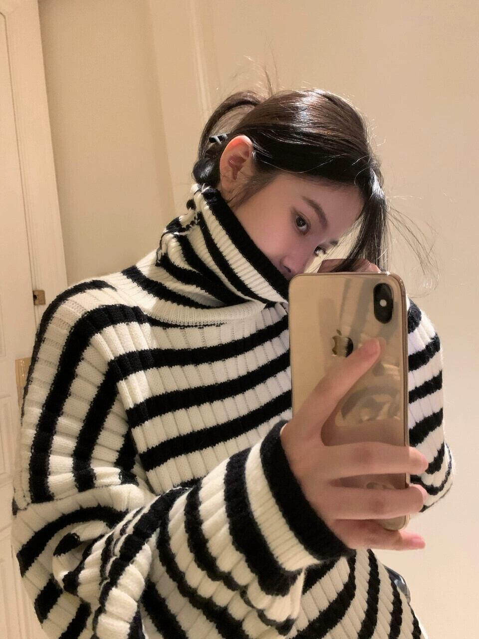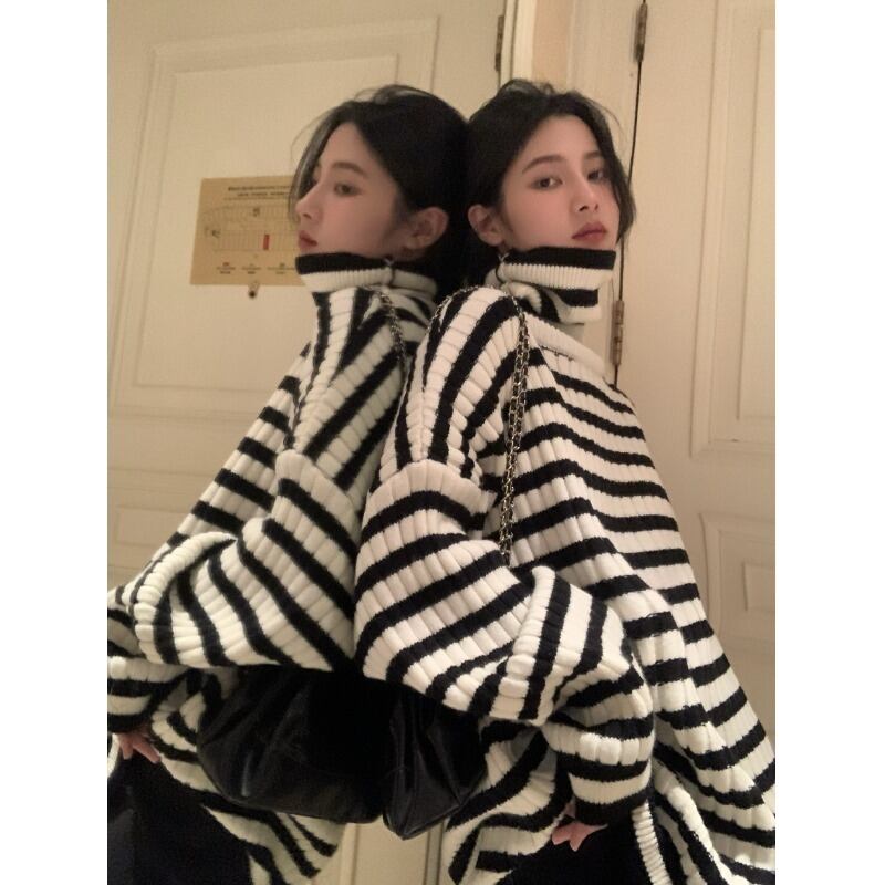 アメリカンレトロな黒と白のストライプの肥厚プルオーバーセーター女性の春と秋の2023新しいオールマッチルーズスリムトップトレンド ホワイト ブラック スプリング 春物 オータム 秋物 0921936718485927