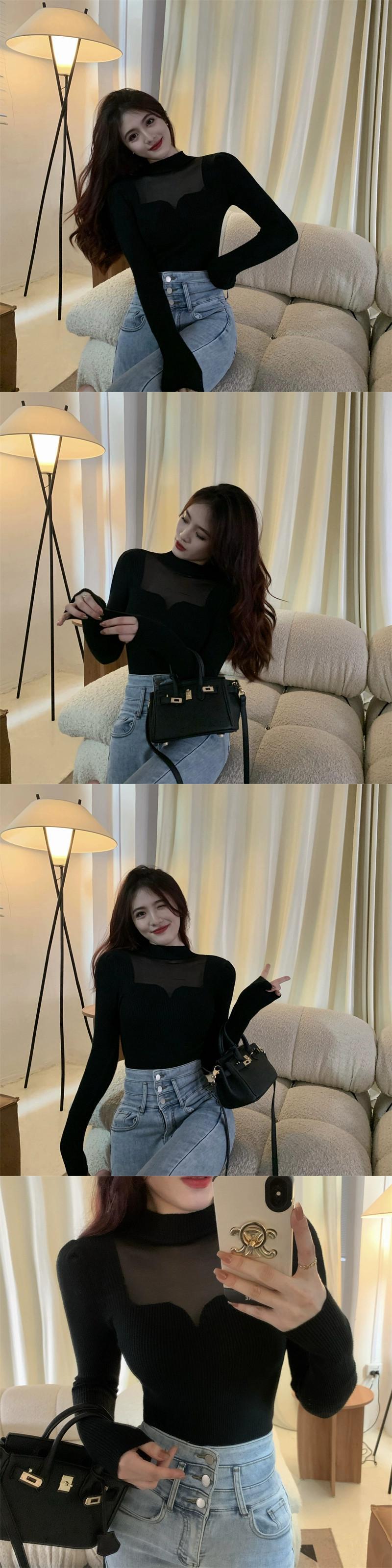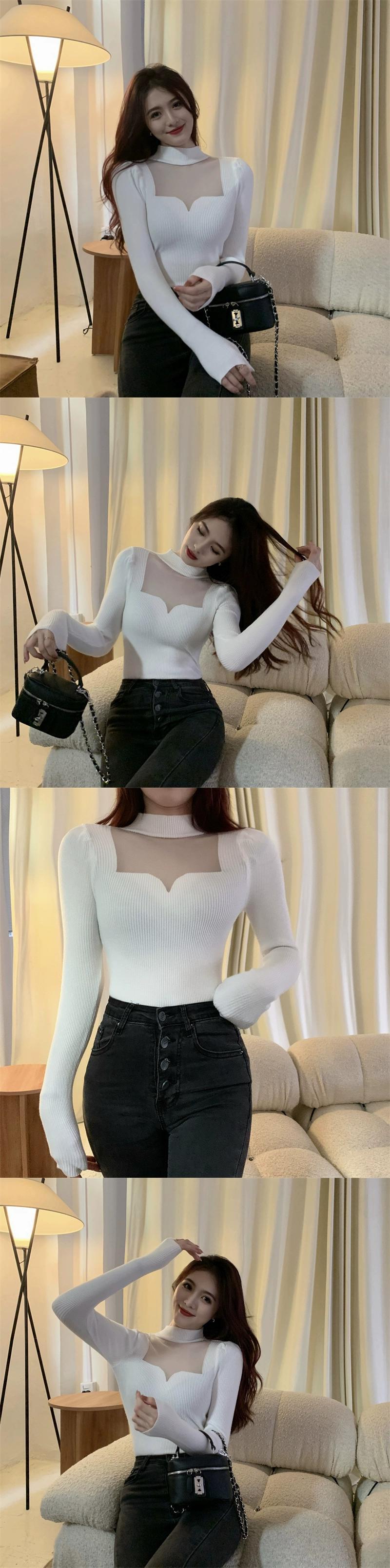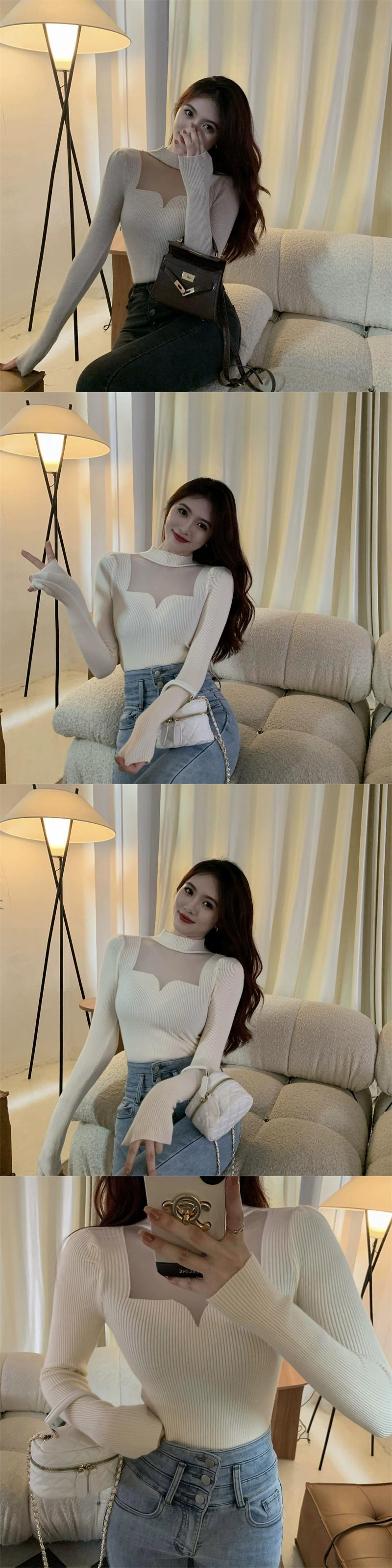純粋な欲望風メッシュステッチ長袖ニットセーター婦人服春と秋 2023 新デザインハーフハイカラーセーター ロング スプリング 春物 オータム 秋物 0921928179438184