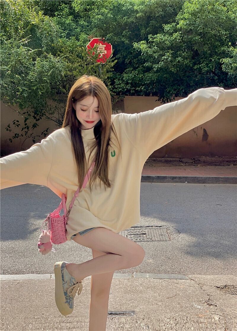 ミルクイエロー刺繍プルオーバーセーター女性の春と秋 2023 新しい怠惰なスタイルシックなオールマッチルーズトップトレンド レッド スプリング 春物 オータム 秋物 0921990736460067