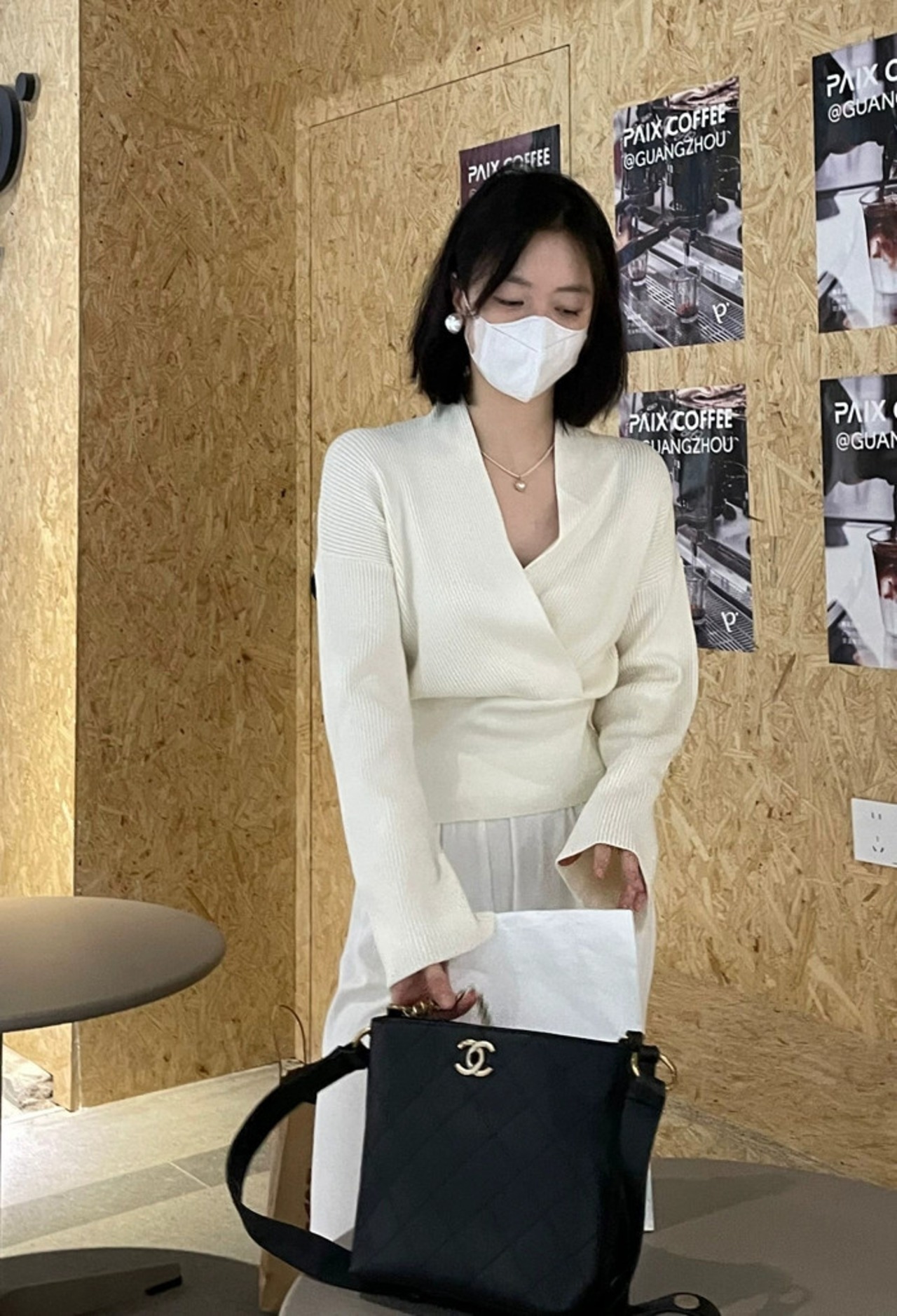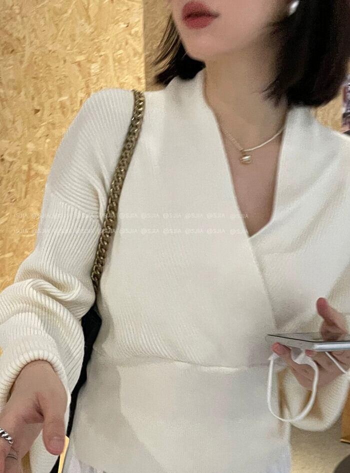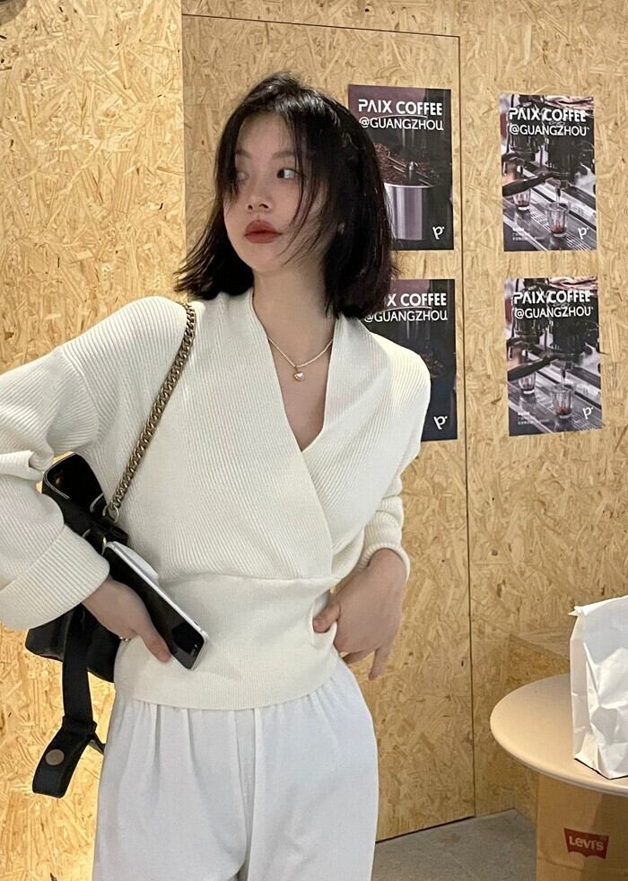 シックなクロス V ネック厚いプルオーバーセーター女性の春と秋 2023 新しいオールマッチスリムスリムセーター スプリング 春物 オータム 秋物 Vネック 0921966922521431