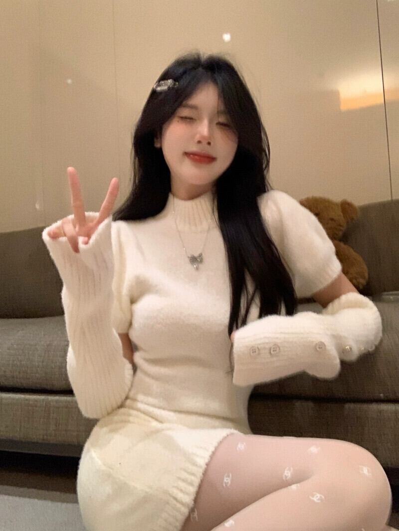 純粋な欲望っぽい白い袖パフスリーブドレス女性の春と秋の2023新しいスリムスリムスカート ホワイト スプリング 春物 オータム 秋物 092192600765889