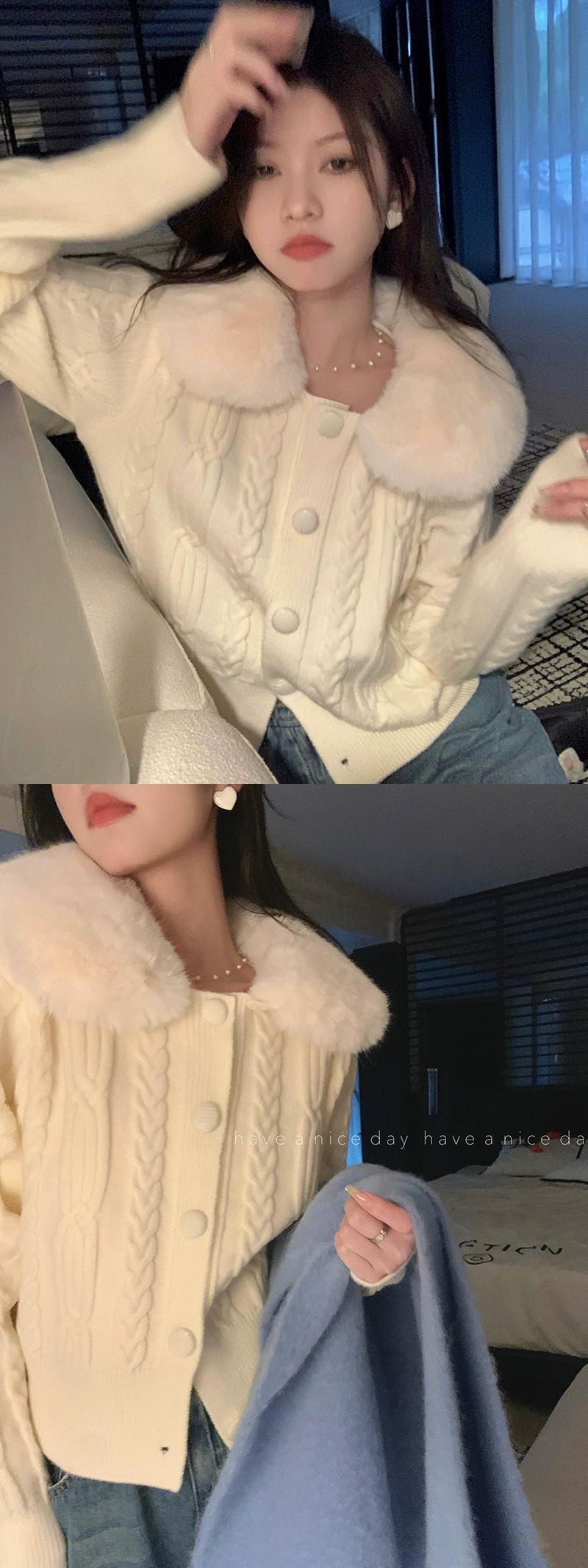 優しいスタイルのシックなスプライシング毛皮の襟ニットカーディガン女性の冬の 2023 新しいファッションオールマッチツイストセータートップ ウィンター 冬物 092196444849169