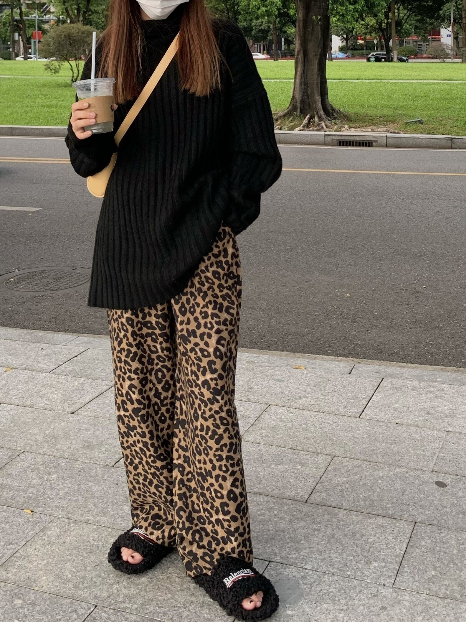 イン香港スタイルヒョウ柄カジュアルパンツ女性の夏の新しいルーズドレープワイドレッグパンツハイウエストスリムモップパンツ潮 ハイウェスト サマー 夏物 0921987131634630