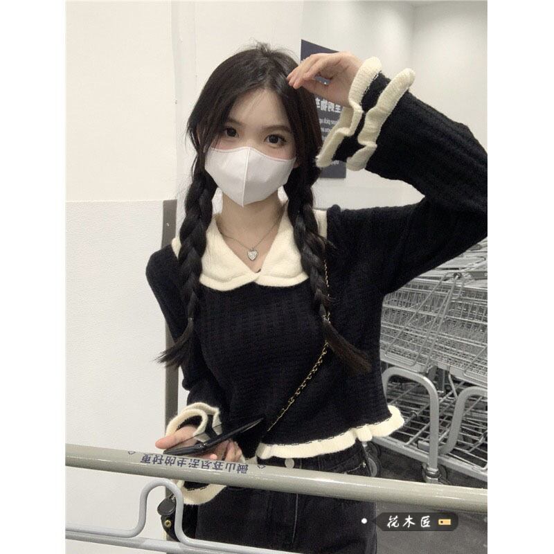 優しいヒットカラーのドールカラーセーターレディース2023春新バージョン薄肉オールマッチショートニットトップ スプリング 春物 0921957610095849