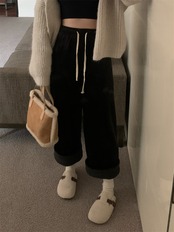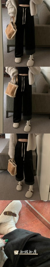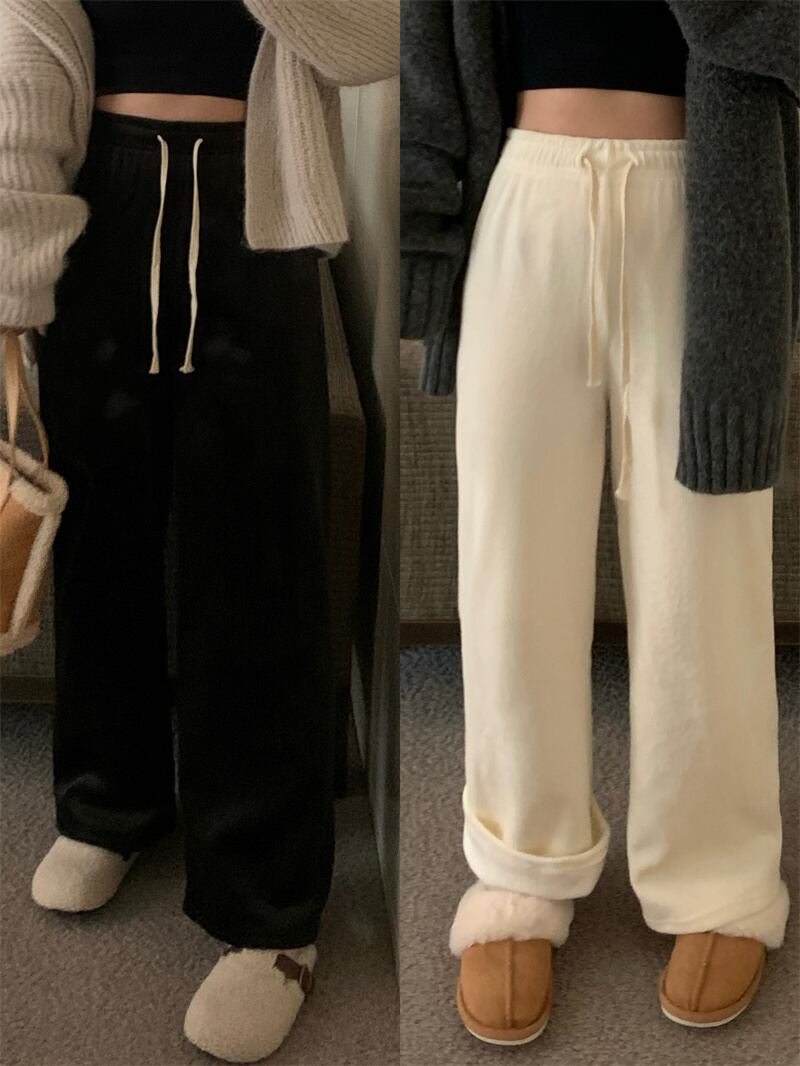 シェニールプラスベルベット厚みのあるゆったりとした薄手のカジュアルパンツの女性の2023春と秋の新しい気質オールマッチフロアモップワイドレッグパンツ スプリング 春物 オータム 秋物 0921943593022358