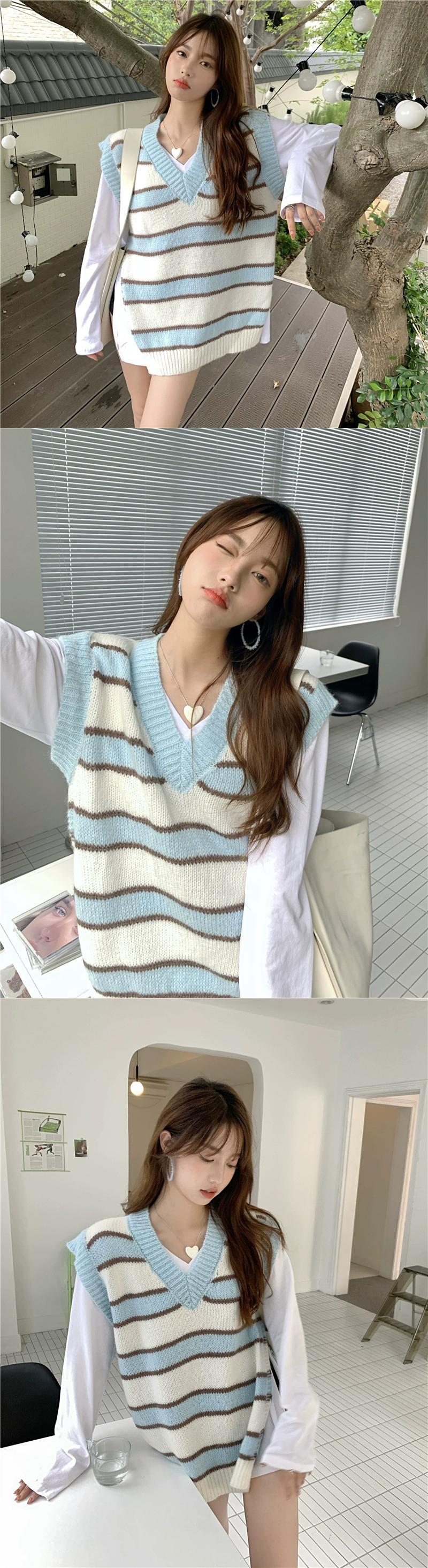 カレッジスタイルのヒットカラーストライプニットベスト女性 2023 春の新しいレトロな年齢を軽減するオールマッチレイヤードトップ レッド スプリング 春物 0921996806448990