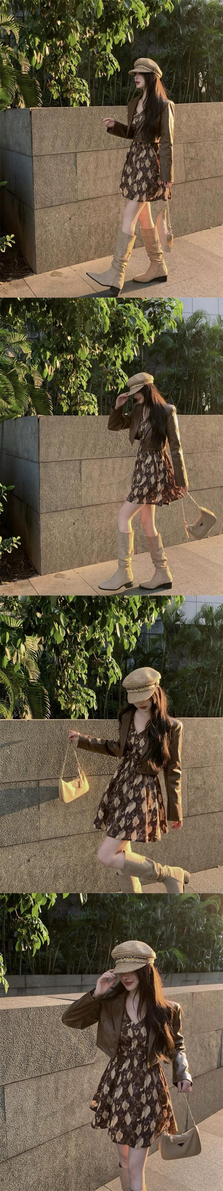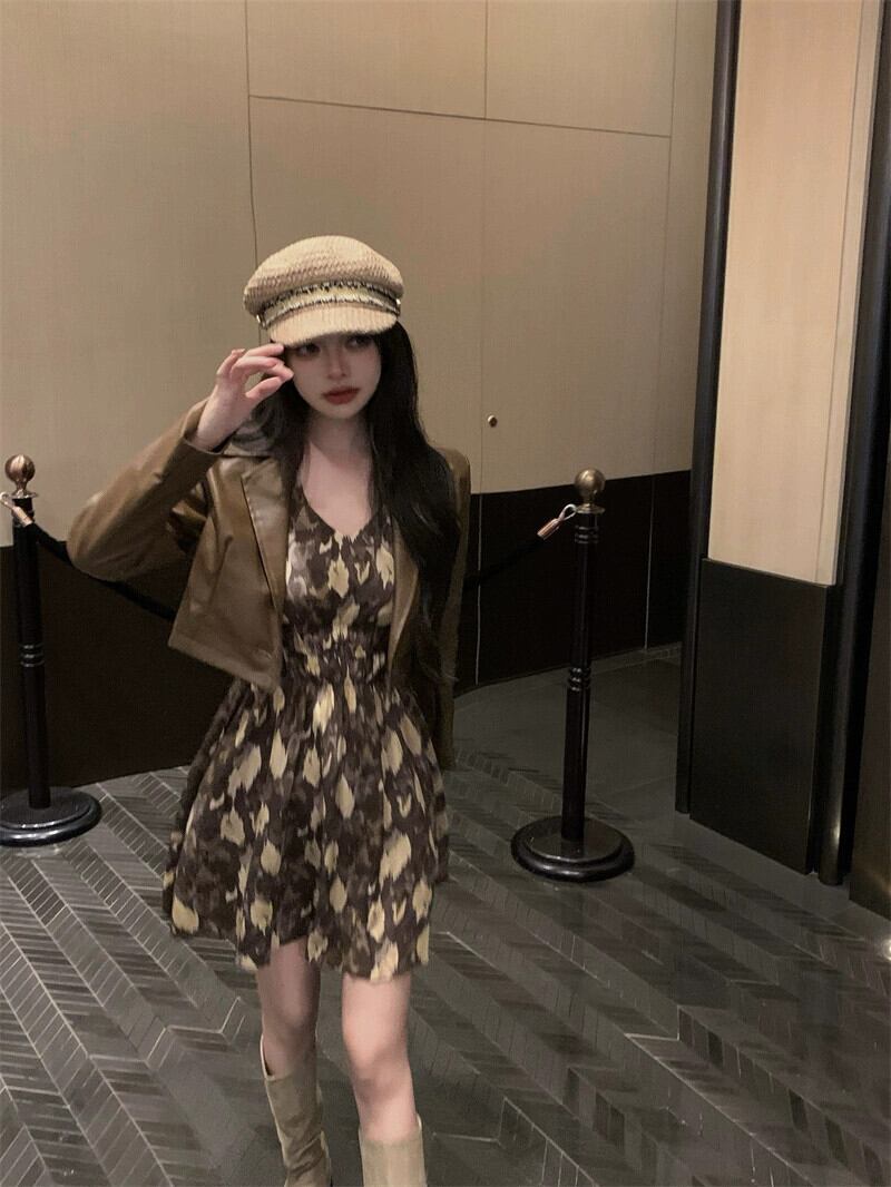 色:花柄ドレス,レザーワンピース