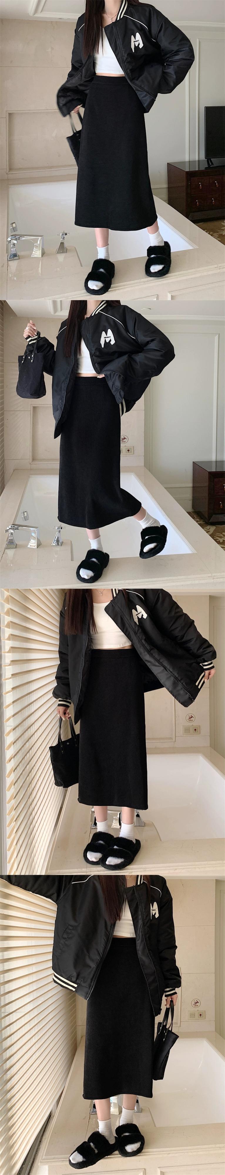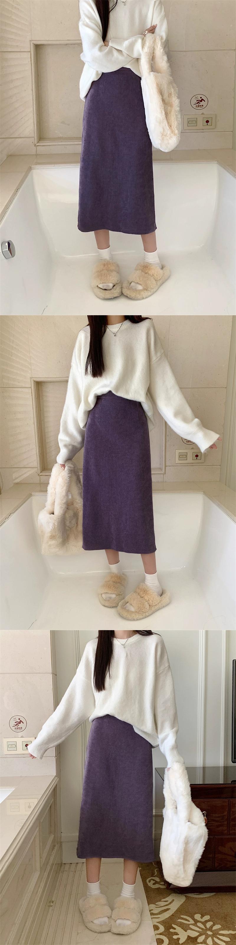 オールマッチプラスベルベット暖かいスカートのバージョンの女性の春と秋の 2023 新しいハイウエスト薄型肥厚スリットボトムスカート ハイウェスト スプリング 春物 オータム 秋物 0921976391967342