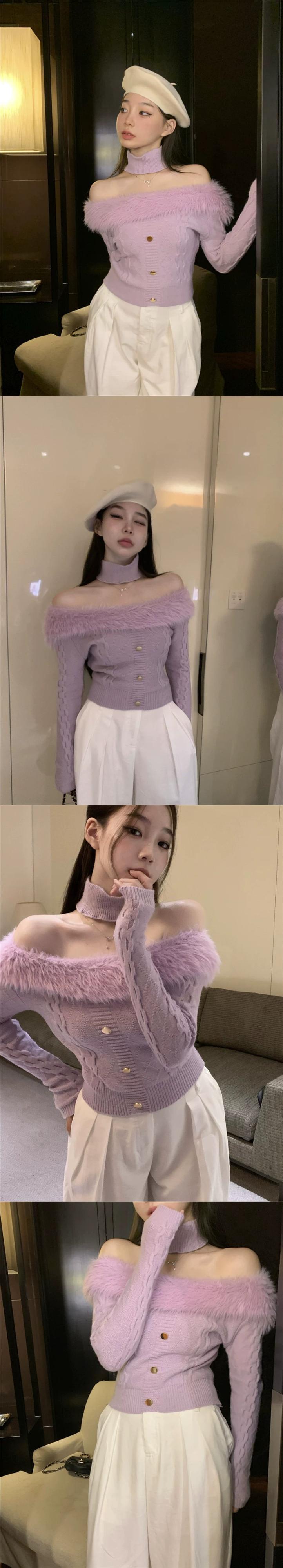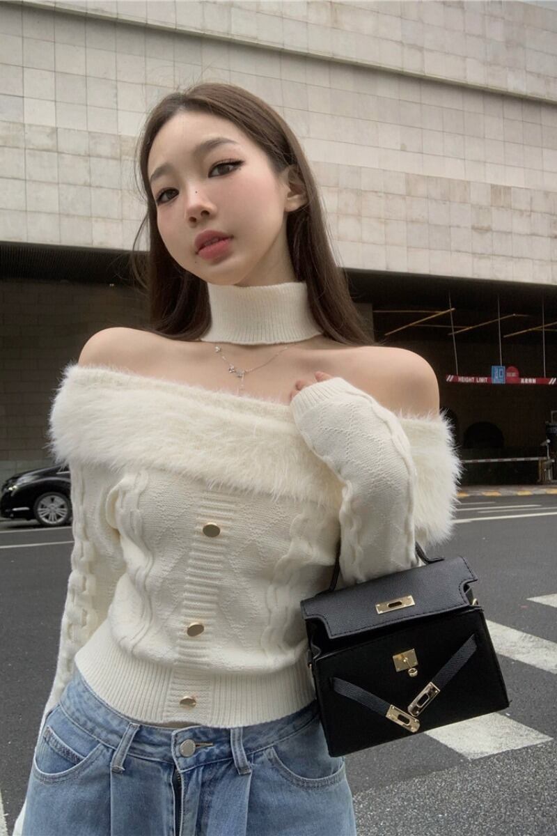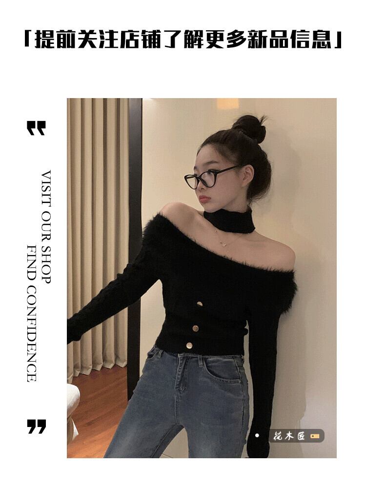純粋な欲望風一言襟白セーター女性の春と秋 2023 新しいぶら下げネックスリムセクシーなショートニットトップ ホワイト スプリング 春物 オータム 秋物 0921998147970229
