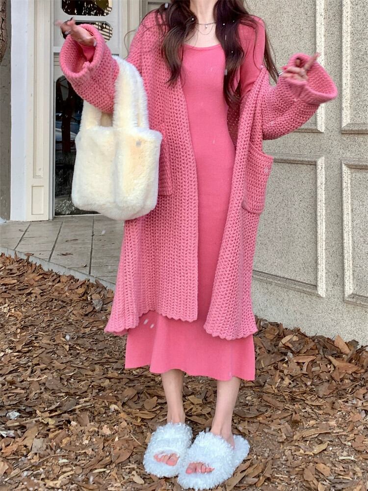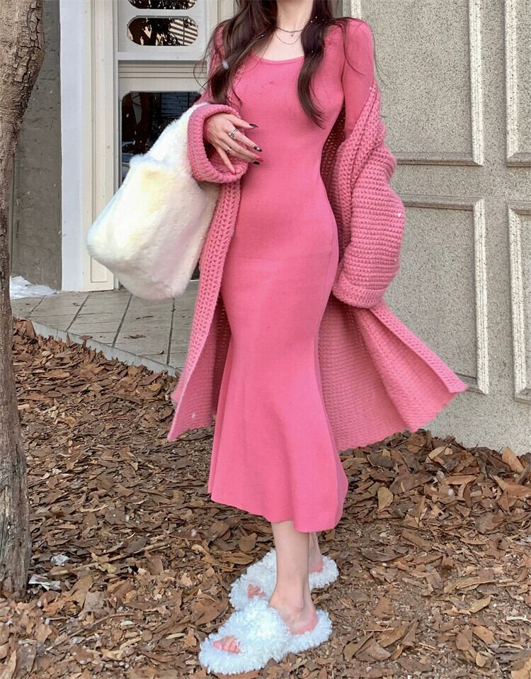優しい風スクエアカラー長袖ニットドレス女性の春と春の自己修養気質セクシーなミドル丈マーメイドスカート ロング スプリング 春物 スクウェア 0921912904034937