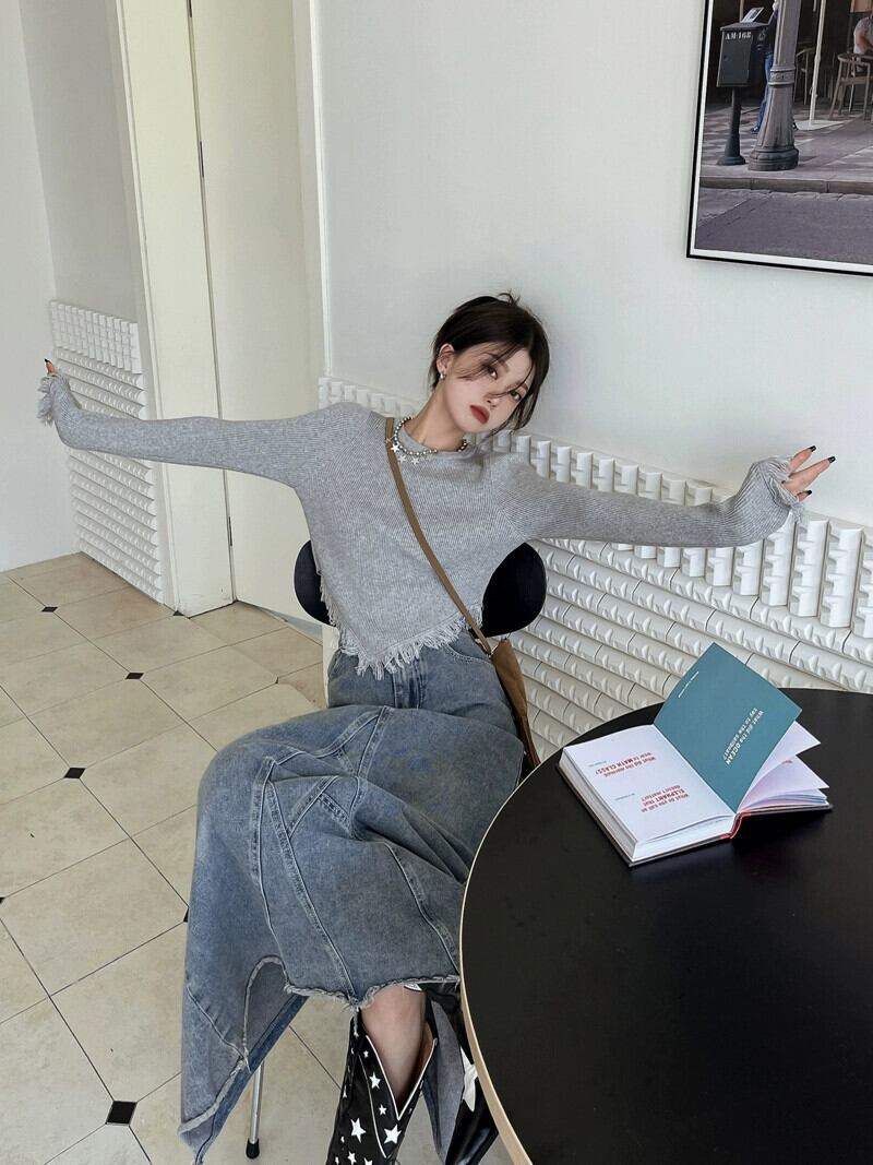 センスニッチテルニットセーターレディース 2023 春の新作スリムフィットと薄いショートシックなボトリングシャツトップ スプリング 春物 0921977928121799