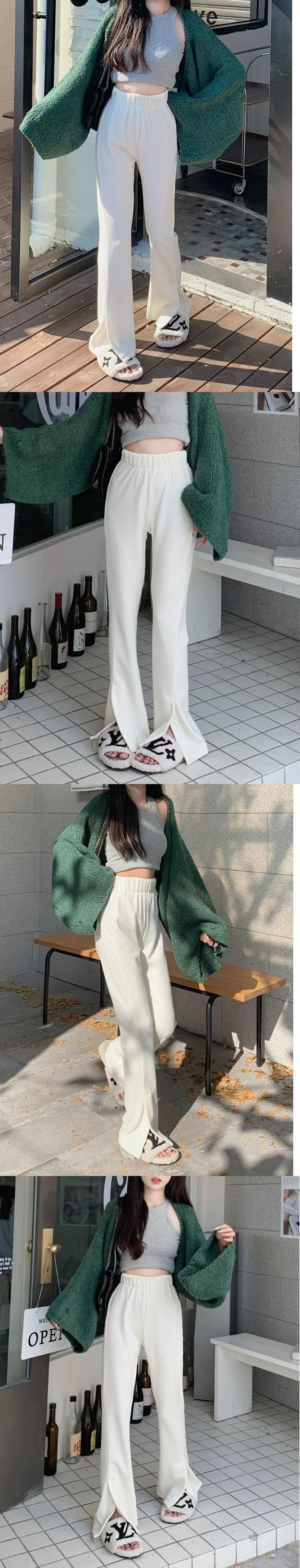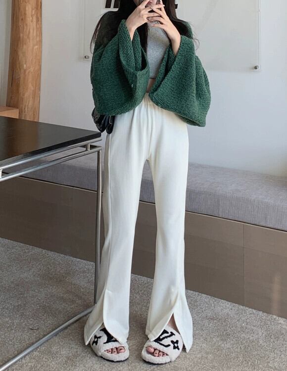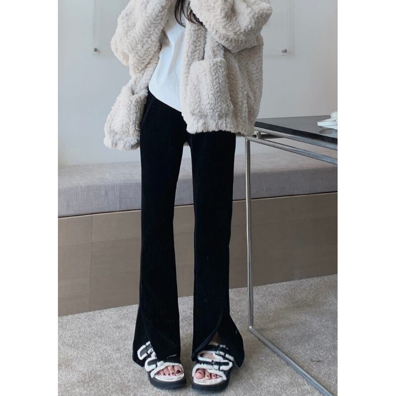 コーデュロイ プラス ベルベット カジュアル パンツのバージョン、女性の春と秋の肥厚スリット モップ パンツ ハイウエスト ルーズなわずかにフレアのワイドレッグ パンツ ハイウェスト レッド スプリング 春物 オータム 秋物 092195243373887