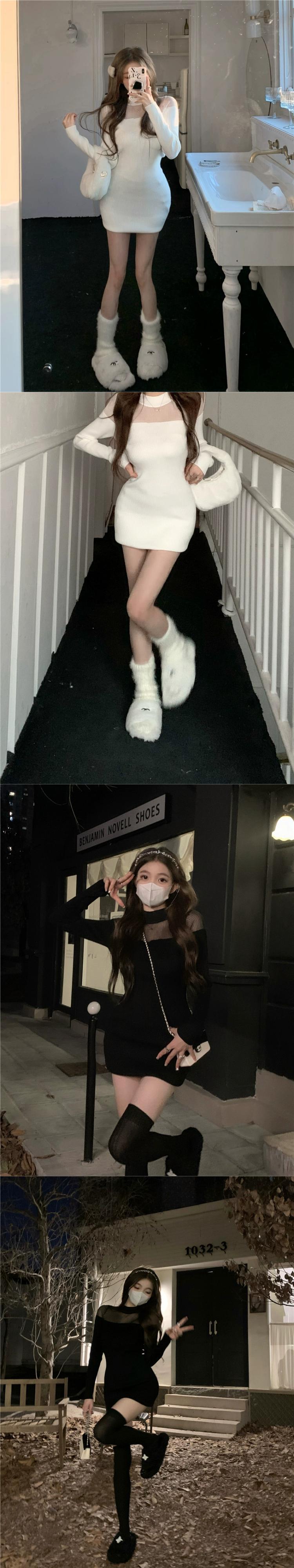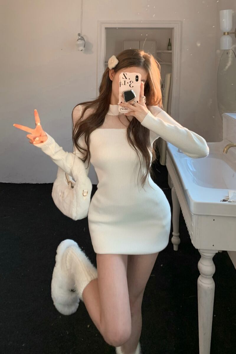 純粋な欲望中空ステッチスリムスリム長袖ドレス女性の春 2023 新しいオールマッチボトスカート ロング スプリング 春物 0921985694342740