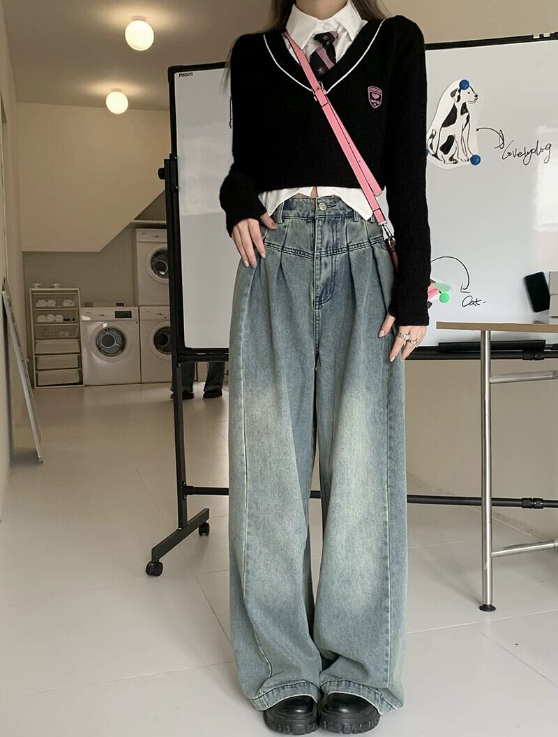 センスディープストリートハンギングハイウエストジーンズレディース2023年夏新作ゆったり薄手モップワイドレッグパンツ サマー 夏物 0921950664839723