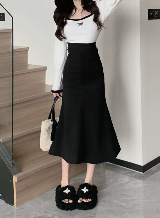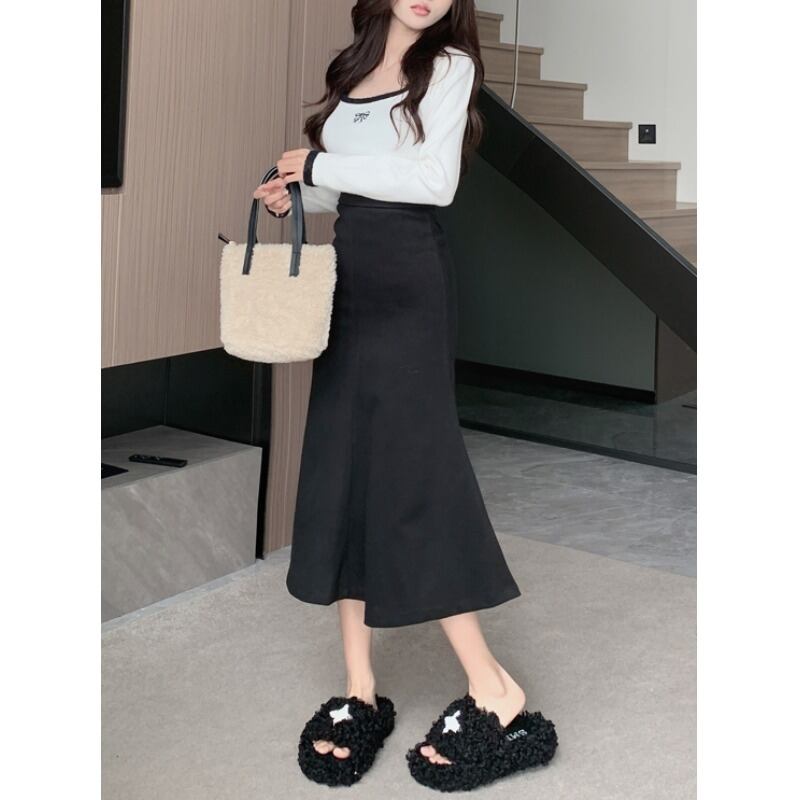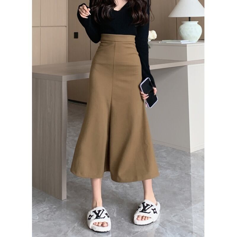 レトロハイウエストスリムウールバッグヒップスカート女性の春と秋の 2023 新しい気質オールマッチフィッシュテールミッドレングススカート潮 ハイウェスト スプリング 春物 オータム 秋物 0921944670890539