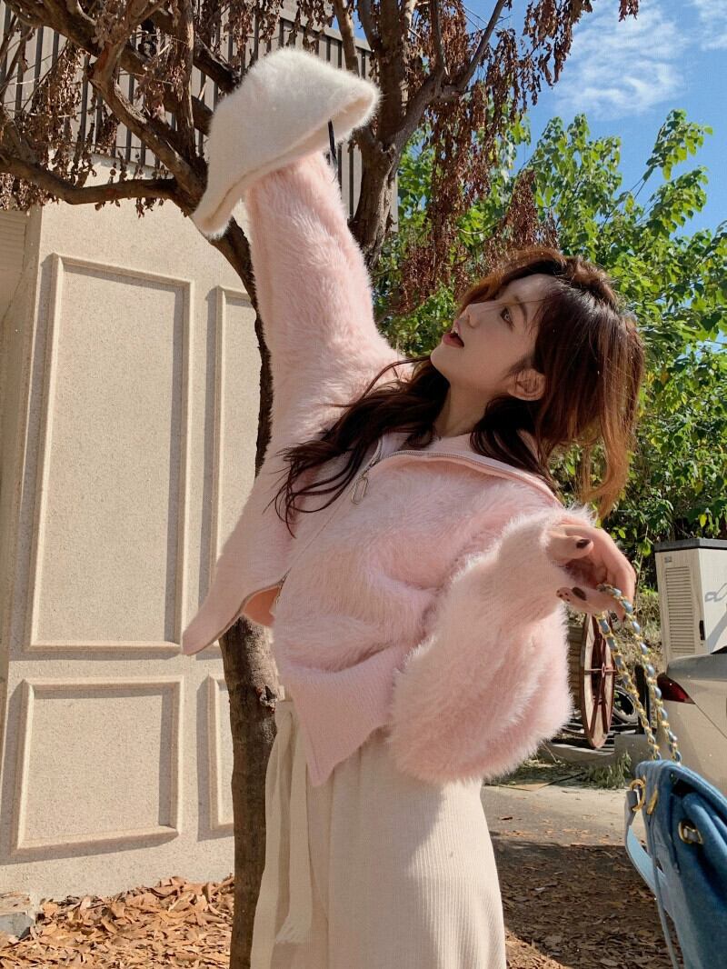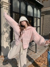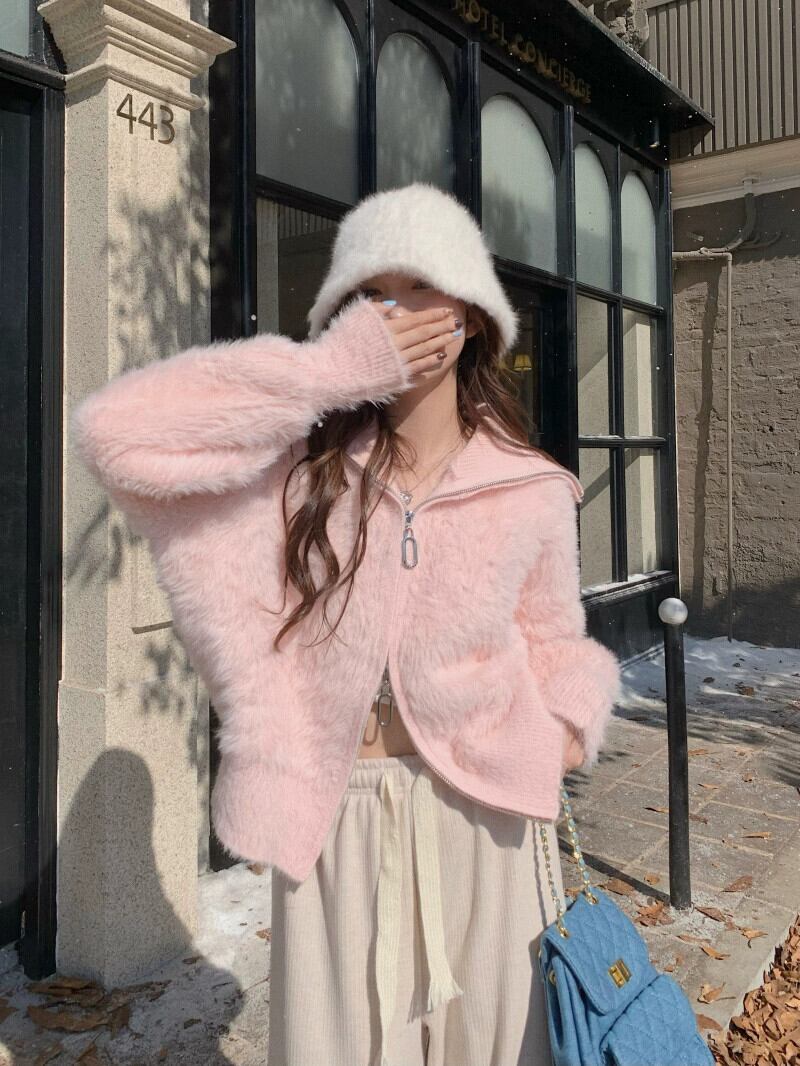 ピンクラペルショートセータージャケット女性の春の2023新しい怠惰なスタイルオールマッチルーズニットカーディガントップ スプリング 春物 0921961888859967