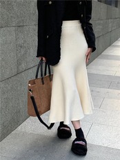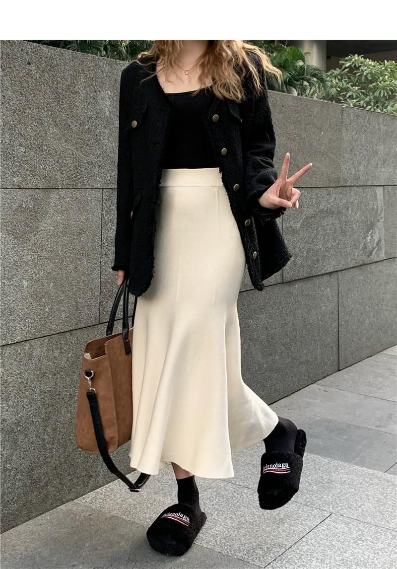 黒のセクシーなハイウエストスカート女性の春と秋の新スリム気質スカートミッドレングスフィッシュテールバッグヒップスカート ハイウェスト ブラック スプリング 春物 オータム 秋物 092196849205521