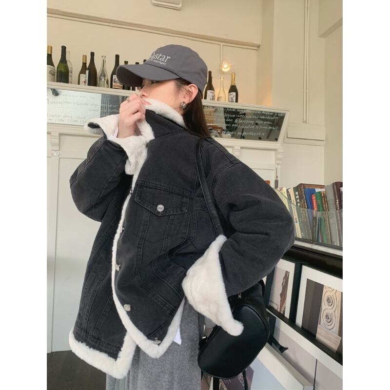 模造ミンクぬいぐるみステッチデニムコットンコート女性の冬 2023 新しいオールマッチルーズで薄いカーディガンコットンコート ウィンター 冬物 0921954226312315