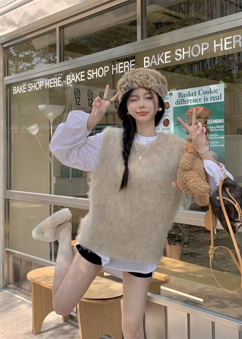 スタイルシンプルなソフトワックス状ルーズノースリーブベストセーターベスト女性春 2023 新しいカジュアルレイヤードベスト潮 レッド スプリング 春物 0921959166505696