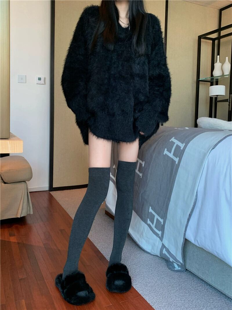スタイルデザインセンスソリッドカラー肥厚ミッドチューブソックス女性の春と秋の2023新しいスリムカーフソックスオーバーニーストッキング潮 スプリング 春物 オータム 秋物 タイツ 0921978921438036