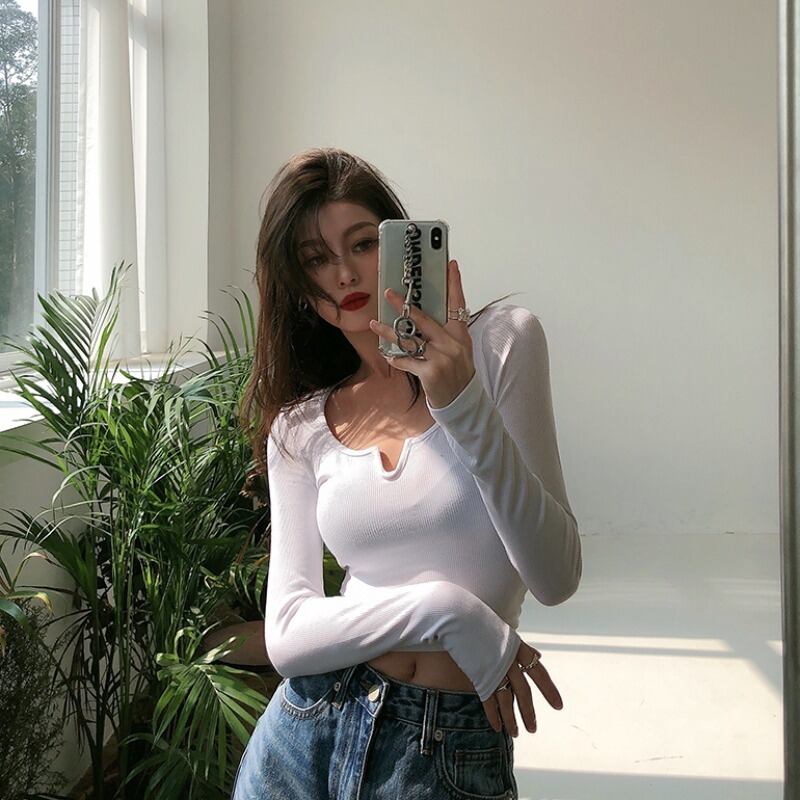 センス V ネックショート長袖 Tシャツレディース 2023 春と秋の新しい気質オールマッチ自己修養と薄底シャツトップ ロング スプリング 春物 オータム 秋物 Vネック 0921931135830653
