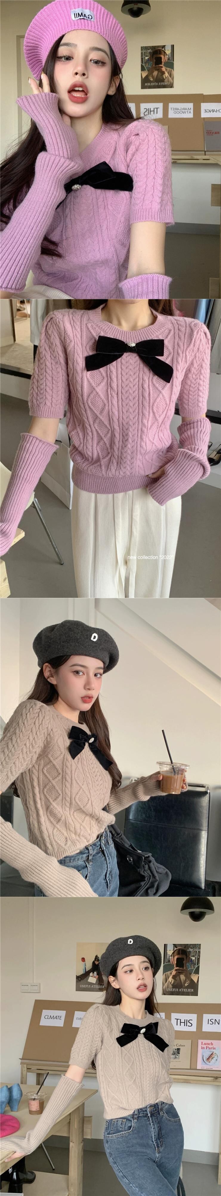 レトロ スウィート スパイス ガールズ ちょう結びツイスト セーター レディース 春と秋 20022 スリム スリム スリーブ ニット トップ リボン 大人ガーリー キュート カジュアル スプリング 春物 オータム 秋物 0921935953047385
