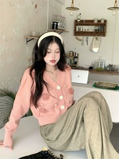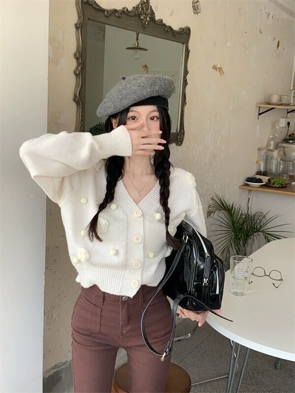 甘い小さな香り立体椿ニットカーディガン婦人服春と秋 2023 新年齢削減セータージャケット 大人ガーリー スウィート キュート カジュアル スプリング 春物 オータム 秋物 0921993907219005