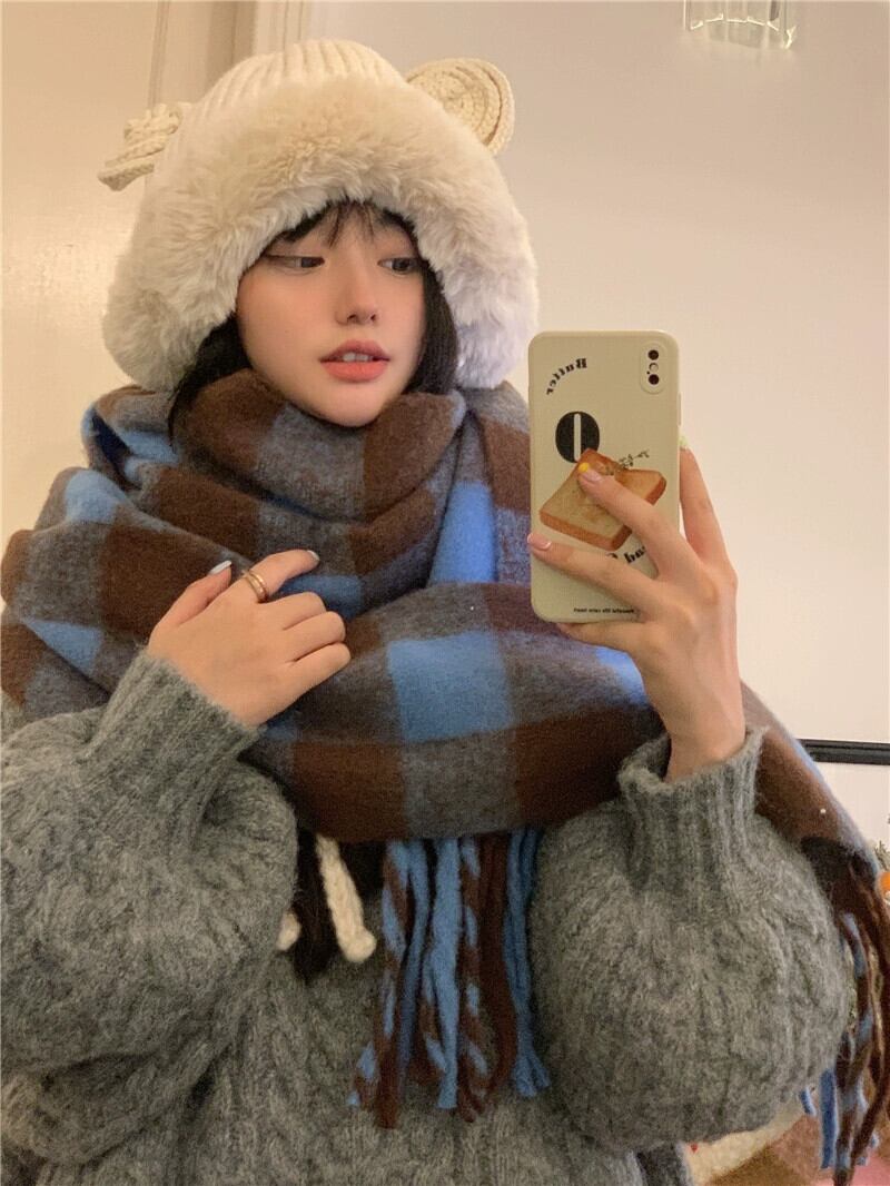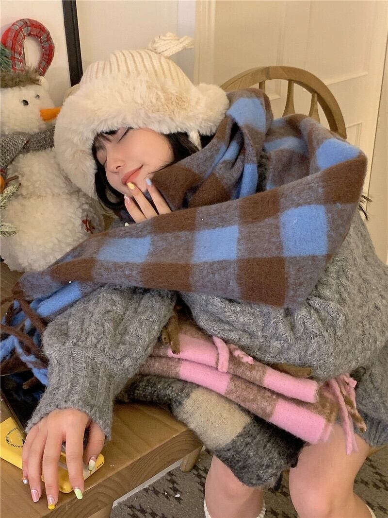 暖かいテルチェック柄スカーフレディース春春 2023 防寒多用途グレード模造カシミヤスカーフ スプリング 春物 0921940712052205