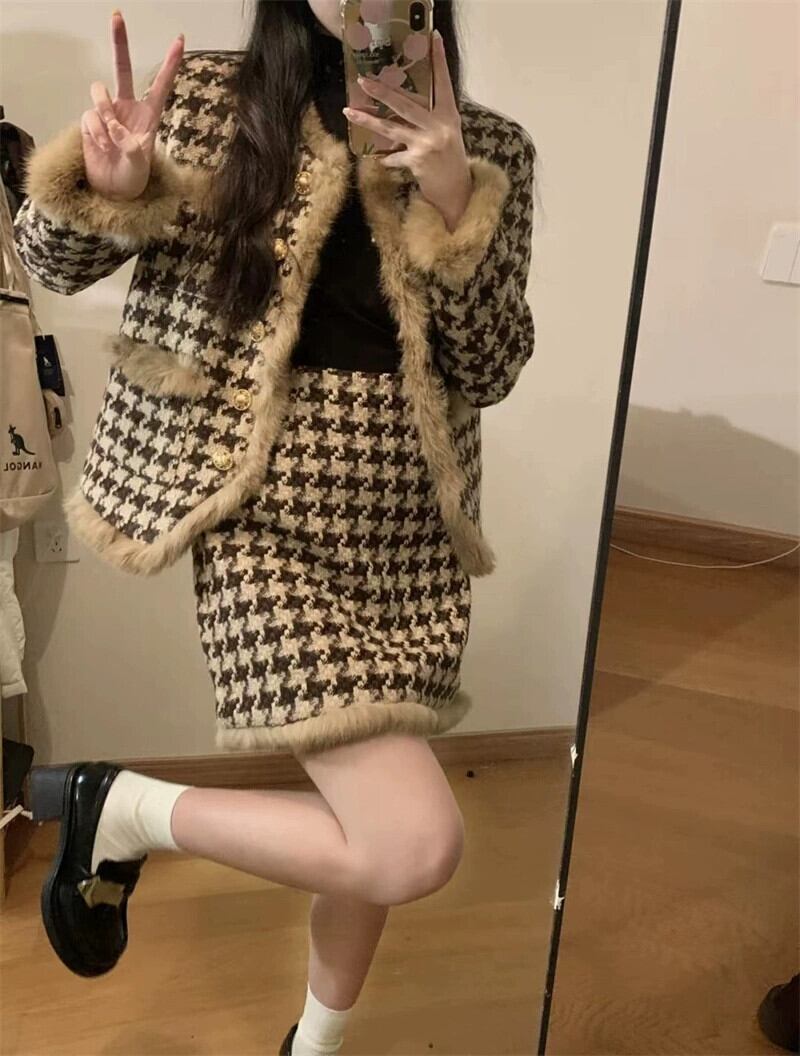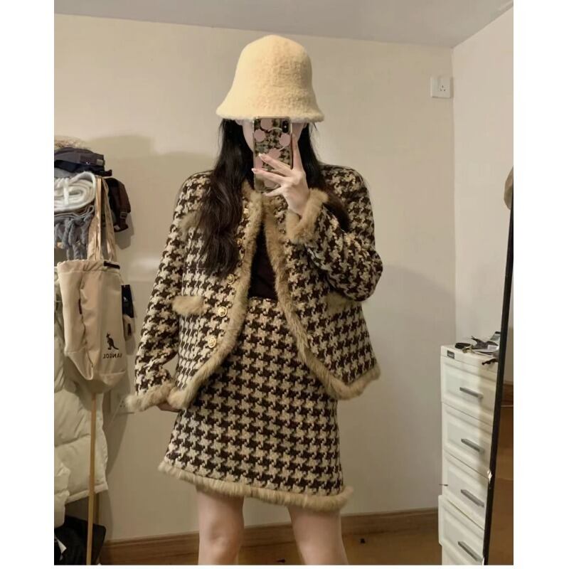 フレンチスタイルの小さな香りのレディスーツ女性の2023春と秋の新作ショートコートハイウエスト薄手スカート2点セット ハイウェスト スプリング 春物 オータム 秋物 0921917744348059