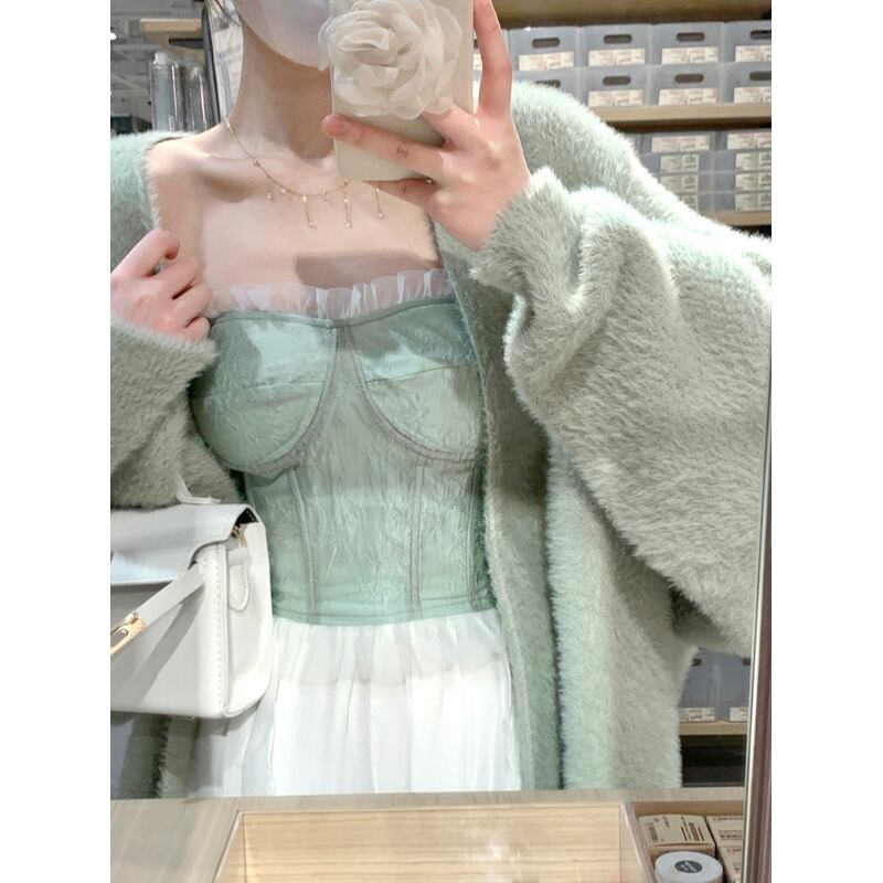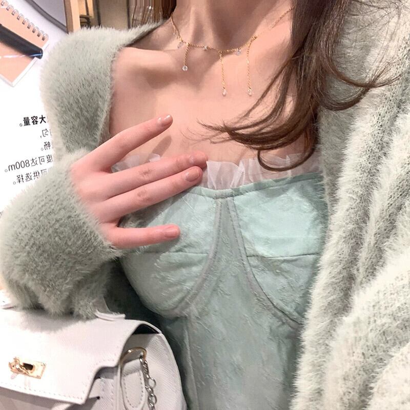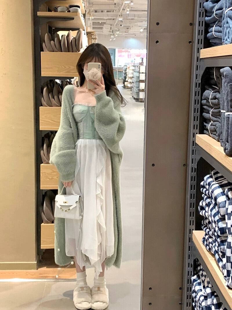 優しい風模造ミンクフリースセータージャケット女性の春 2023 新しいミッドレングス怠惰なスタイル長袖ニットカーディガン ロング スプリング 春物 0921969048431506